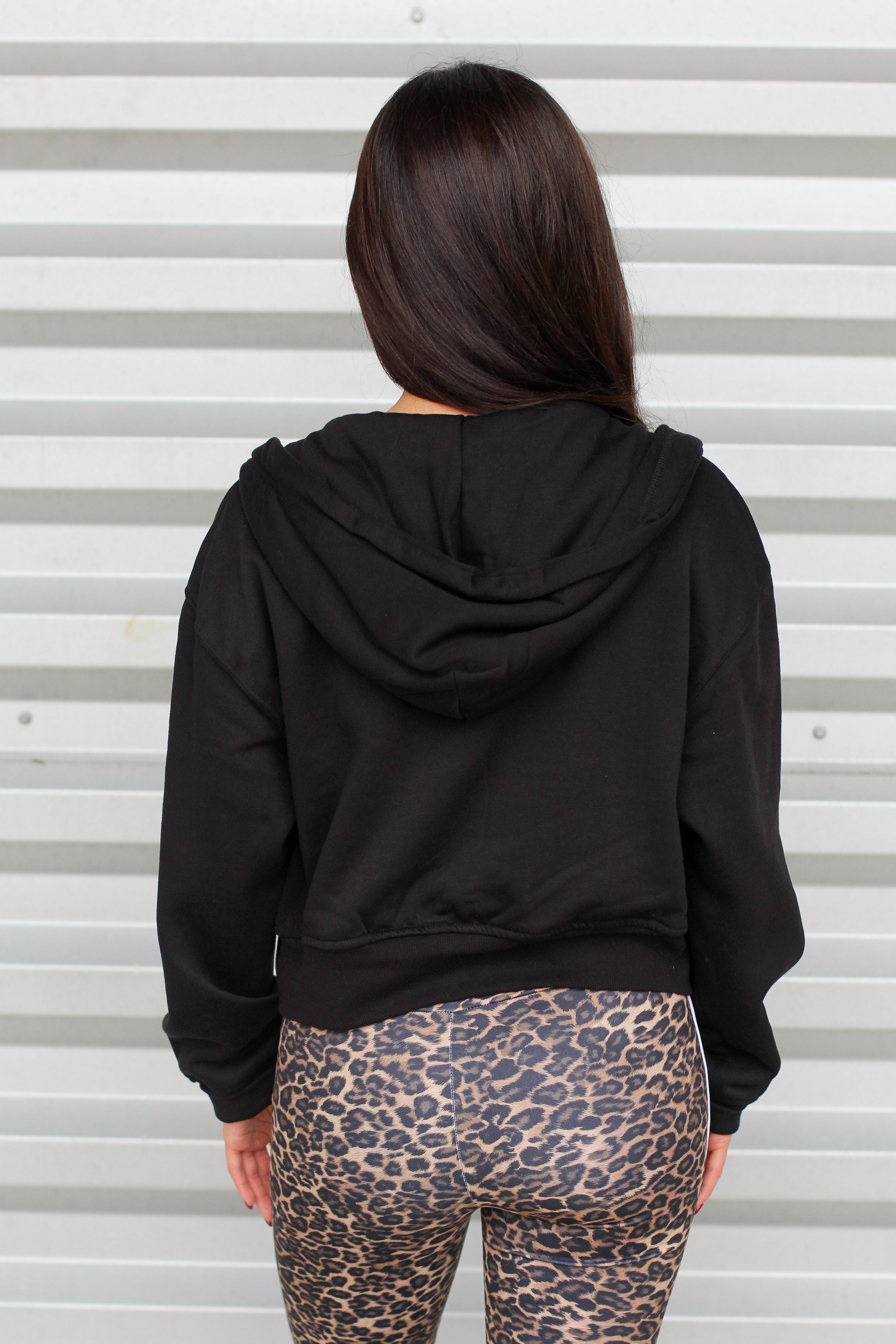 This classic black zip-up hoodie is the perfect layering piece for your everyday looks. Designed with a relaxed fit and soft interior, it’s easy to throw on over activewear, lounge sets, or casual outfits for an effortlessly cool vibe. Finished with a full front zipper and adjustable drawstring hood, this hoodie is a must-have staple you’ll reach for again and again.