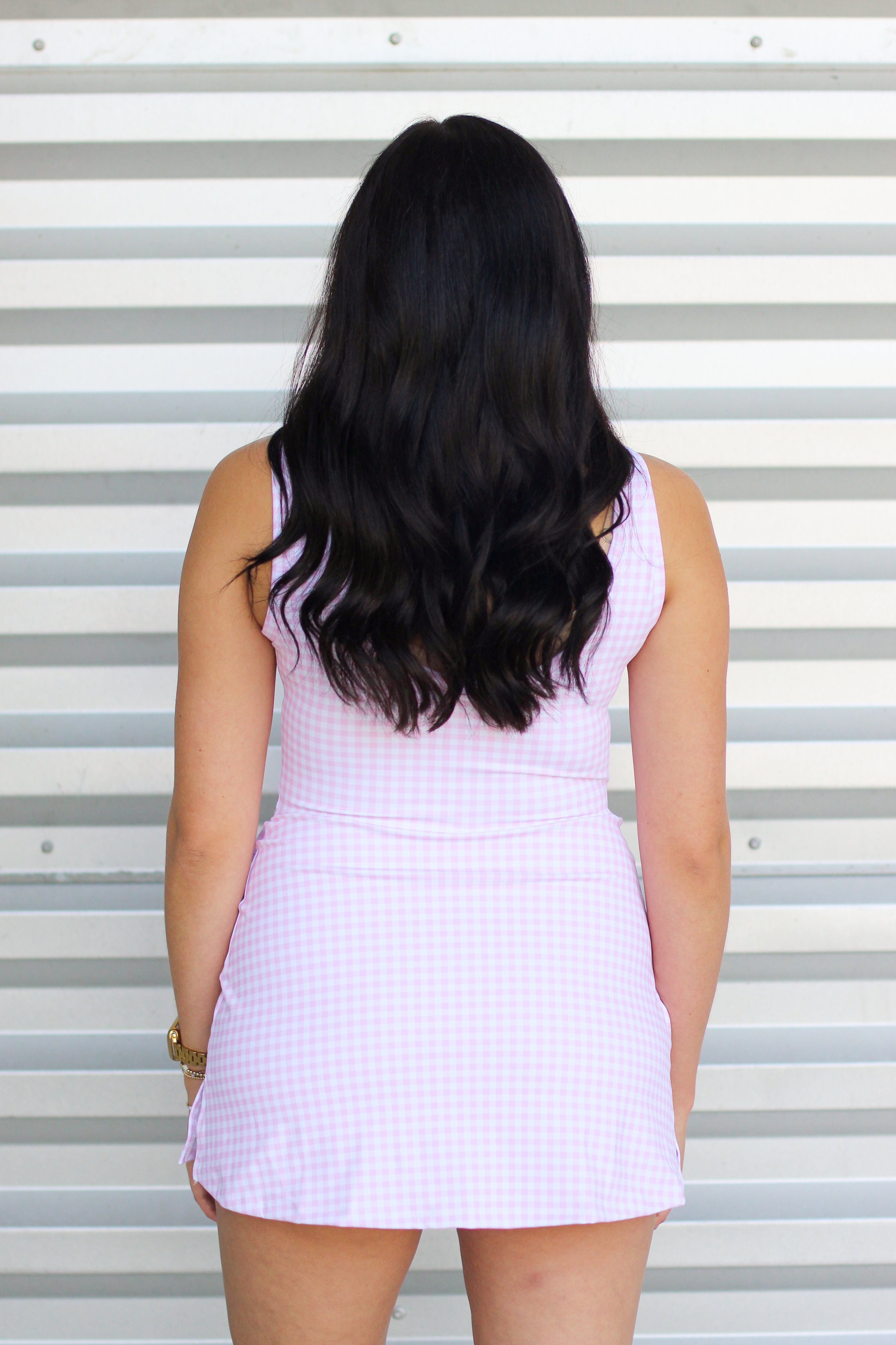 This lilac gingham dress is the perfect blend of sweet and modern. With its playful check print and tie detail at the waist, it gives you a flattering silhouette while keeping things fresh and fun. The sleeveless cut makes it an easy piece to layer with cardigans or wear solo on warm days.