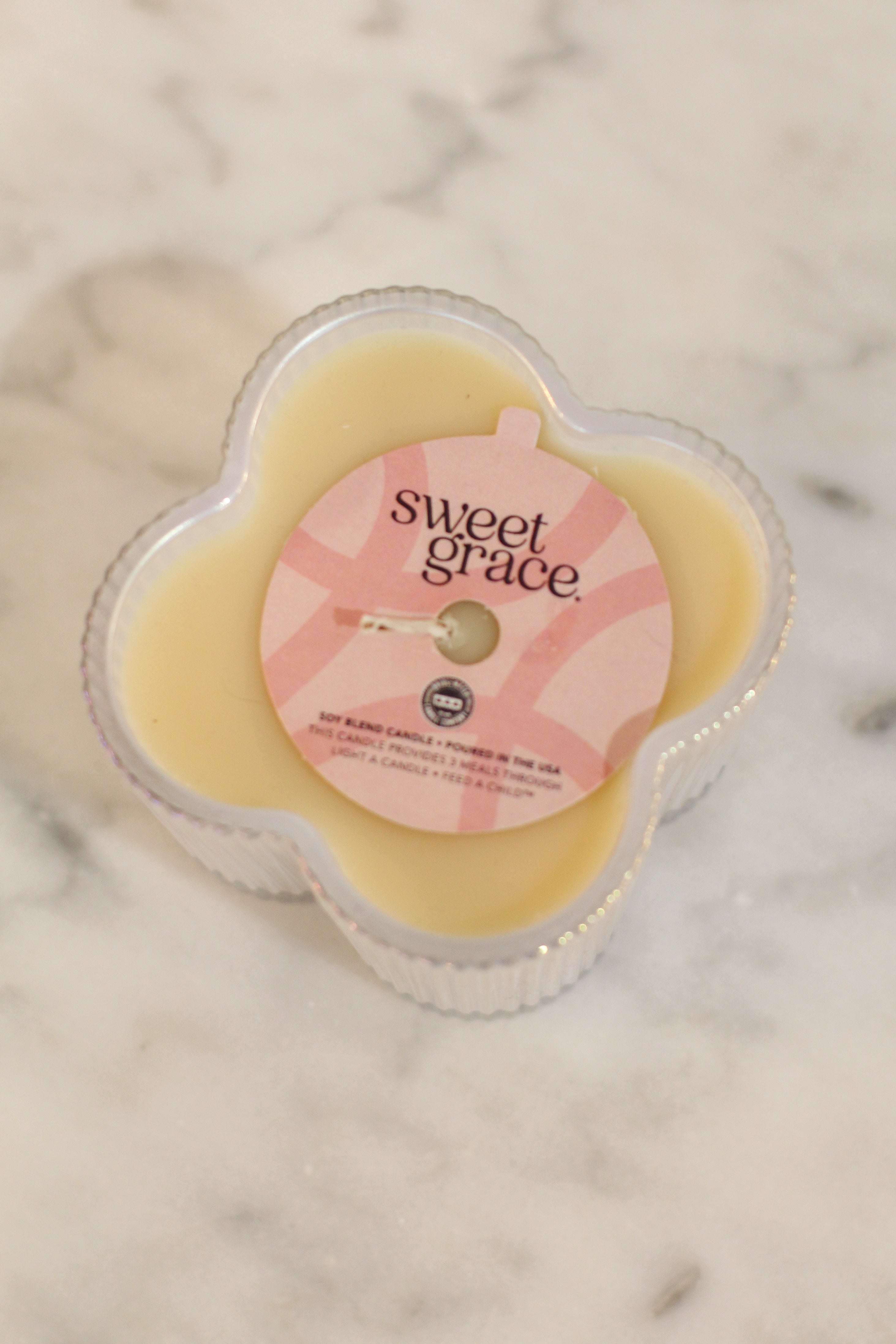 Charming and full of character, Sweet Grace Candle #076 blooms with beauty in a delightful flower-shaped vessel. Its ribbed texture and iridescent white finish catch the light from every angle, adding a playful yet elegant touch to any space. Crafted with our signature soy-blend wax, this 7.2 oz candle offers up to 41 hours of the beloved Sweet Grace fragrance, filling your home with warmth, style, and sweet sophistication.