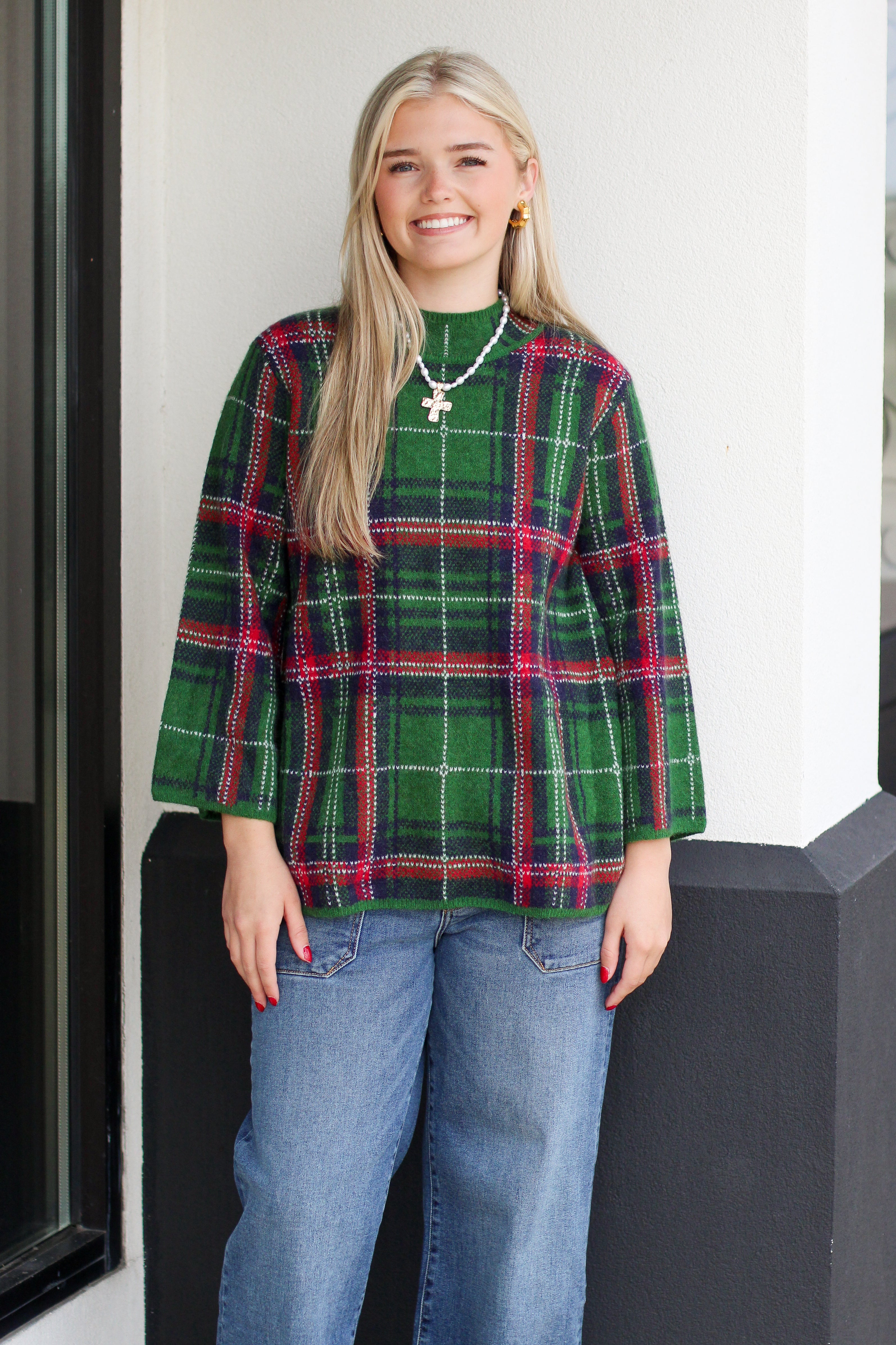 Bring on the cozy holiday vibes with our Holiday Plaid Sweater! This festive knit features a cheerful red and green plaid pattern with hints of tan — perfect for all your seasonal outings. Whether you’re sipping cocoa, wrapping gifts, or heading to a Christmas market, this sweater keeps you warm while looking effortlessly cute.