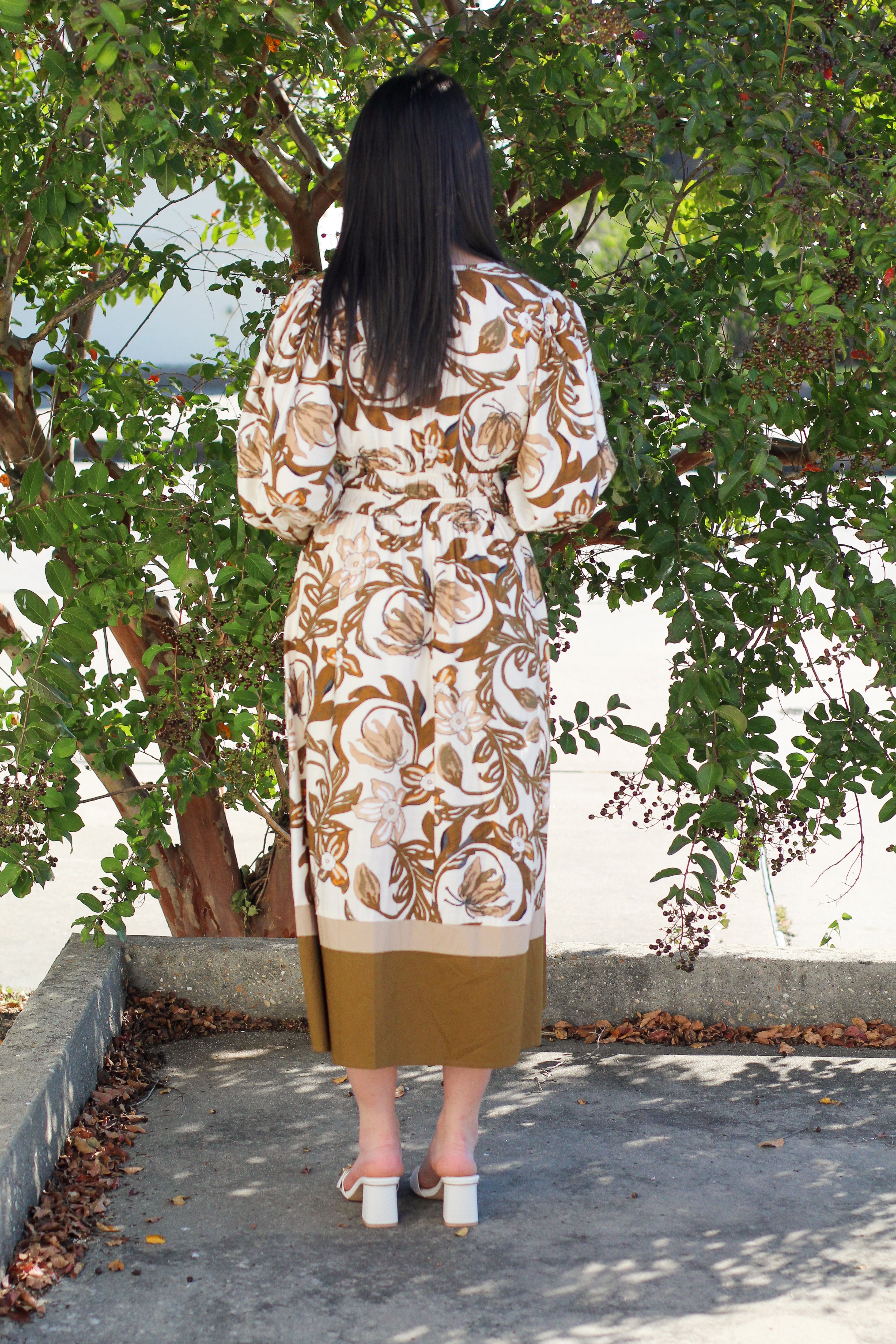 Classic meets effortless in our Golden Garden Button-Front Midi Dress! This neutral-toned floral beauty features a lightweight rayon-blend fabric with a relaxed fit, button-front closure, and an elastic waistband for a flattering silhouette. The ¾-length sleeves and contrast border hem give it that extra touch of sophistication—perfect for church, brunch, or fall gatherings.