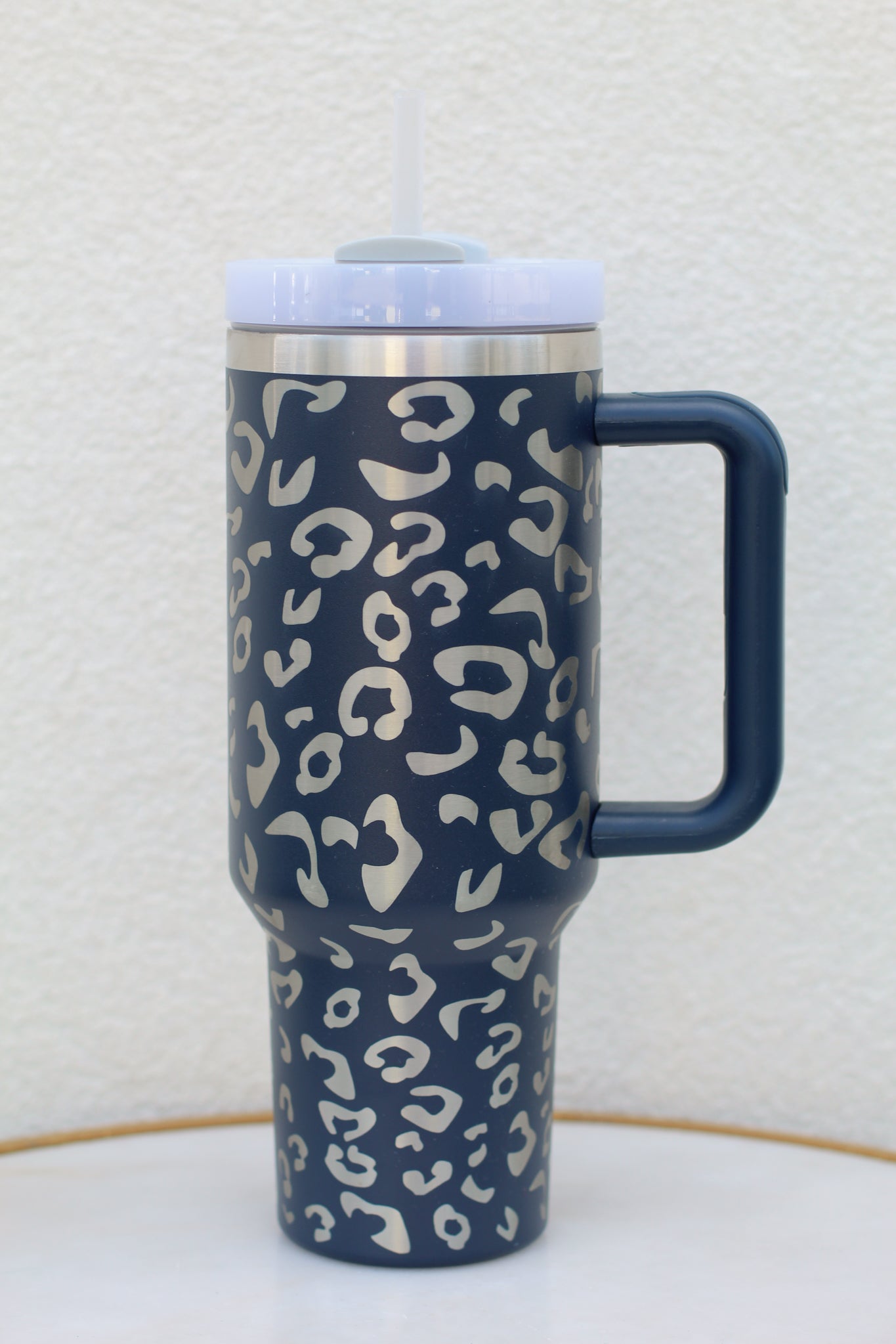 40oz. Leopard Stainless Steel Tumbler-Navy