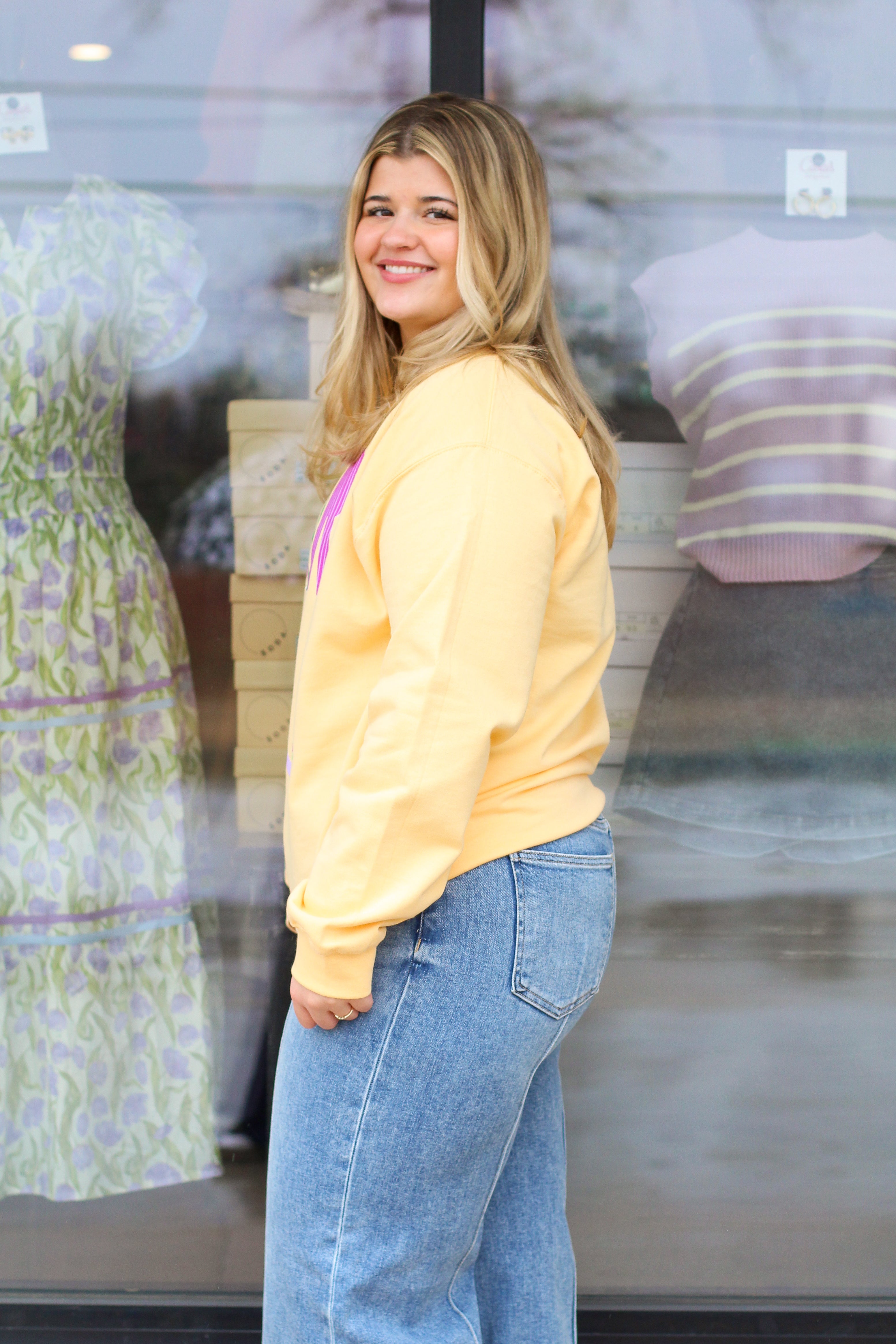 This cheerful Mardi Gras graphic sweatshirt features colorful lettering and classic details, making it the perfect piece for celebrating in comfort—whether you’re heading to a parade or keeping it casual.