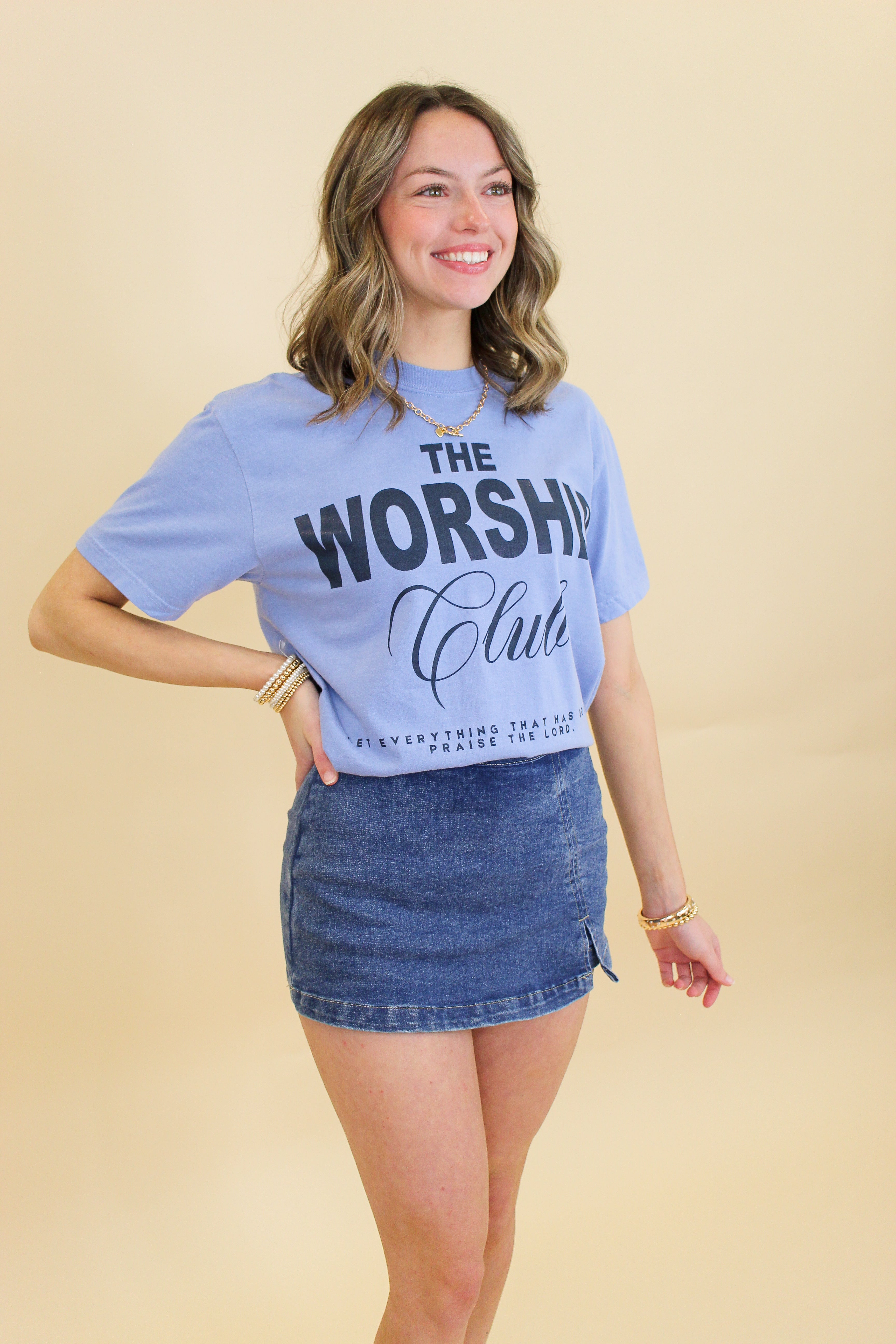Faith meets fashion in The Worship Club Tee! This soft, relaxed-fit tee features bold lettering that reads “The Worship Club” with a powerful reminder from Psalm 150:6 — “Let everything that has breath praise the Lord.” Designed for comfort and inspiration, it’s the perfect piece to wear to church, worship nights, or your everyday errands.