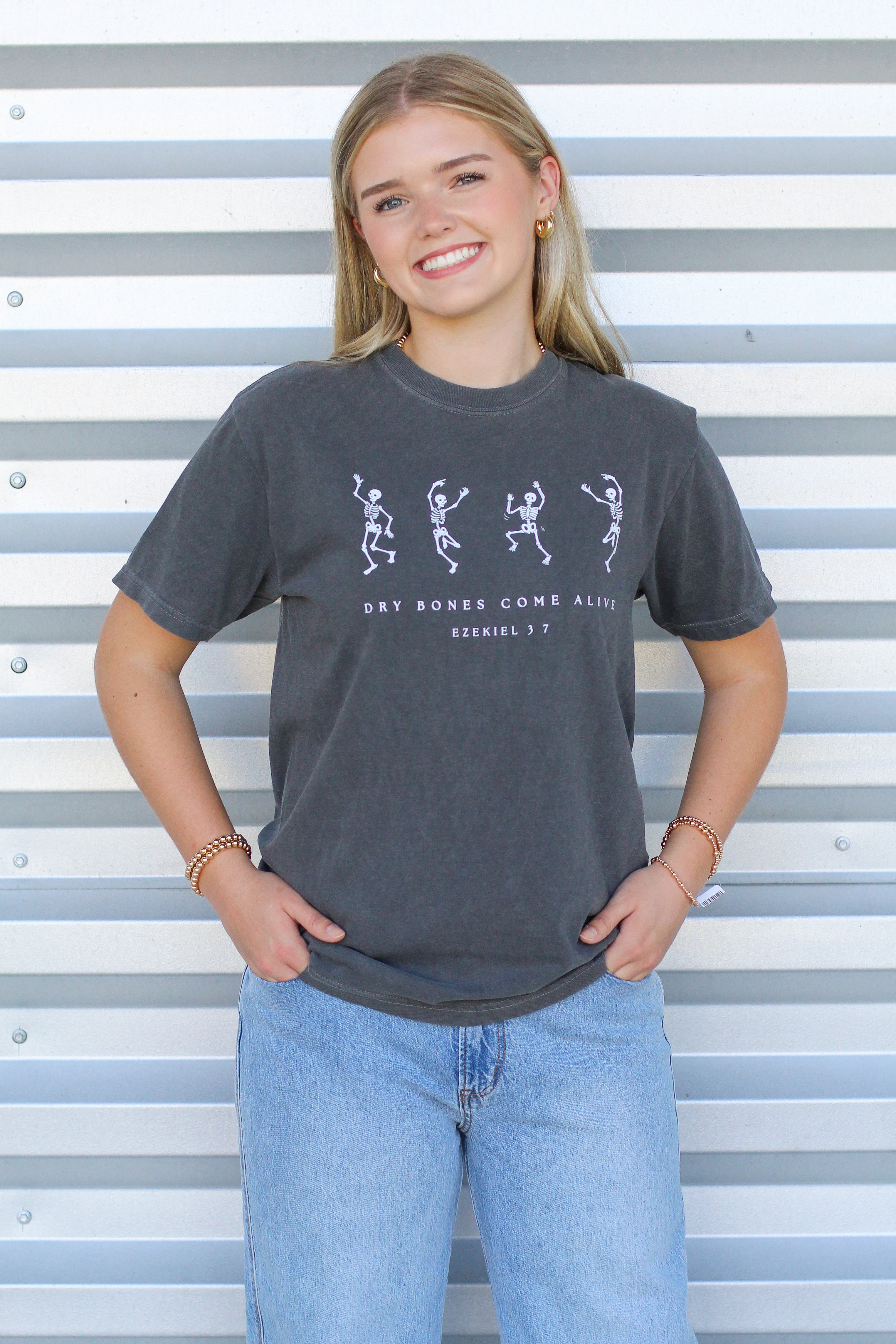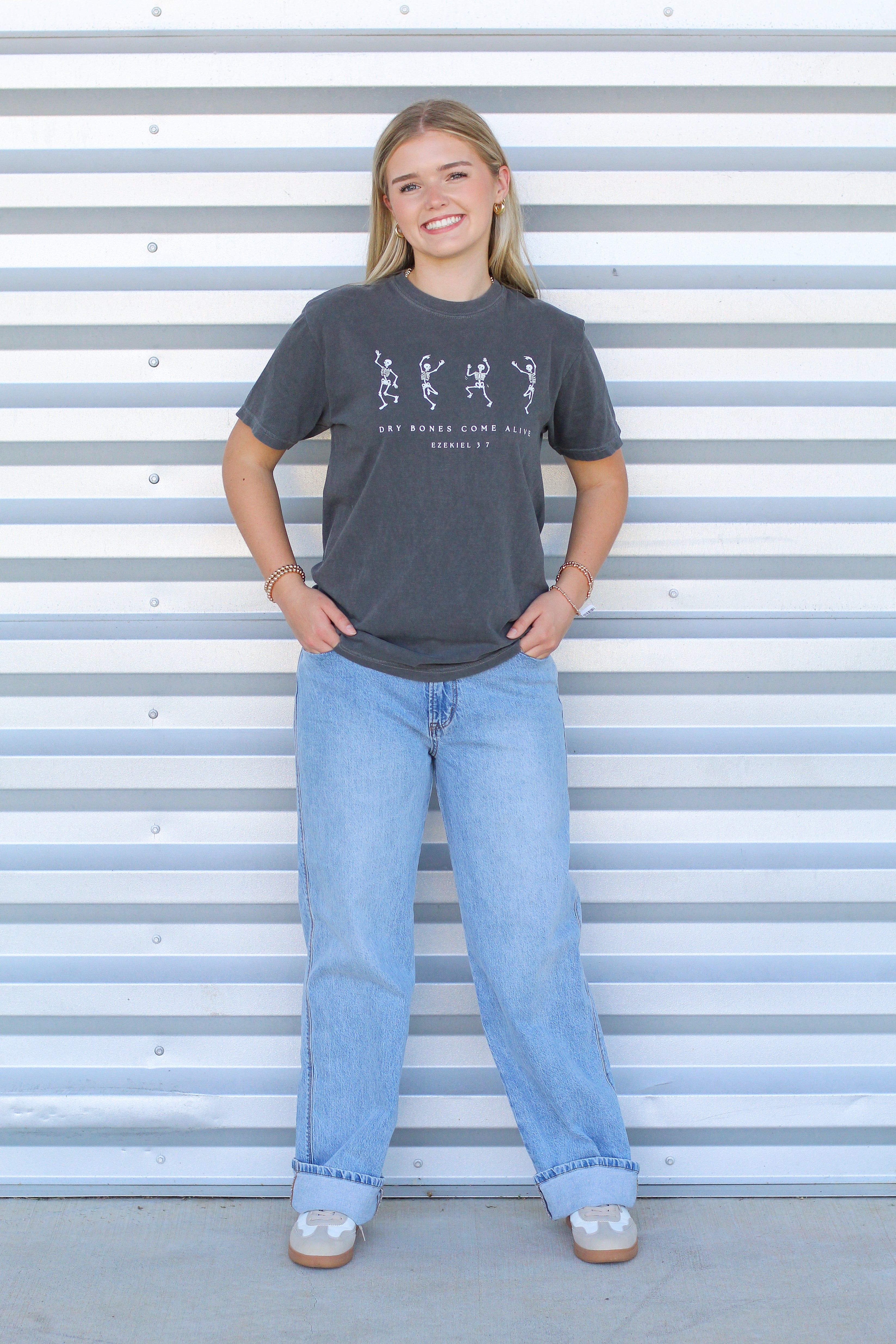 Faith meets fun in our Dry Bones Come Alive Tee! This washed black graphic tee features a playful dancing skeleton design paired with the verse “Dry Bones Come Alive – Ezekiel 37,” making it the perfect mix of trendy and meaningful. Crafted from 100% cotton, it’s soft, breathable, and easy to style — pair it with denim or leggings for a laid-back, faith-filled look.