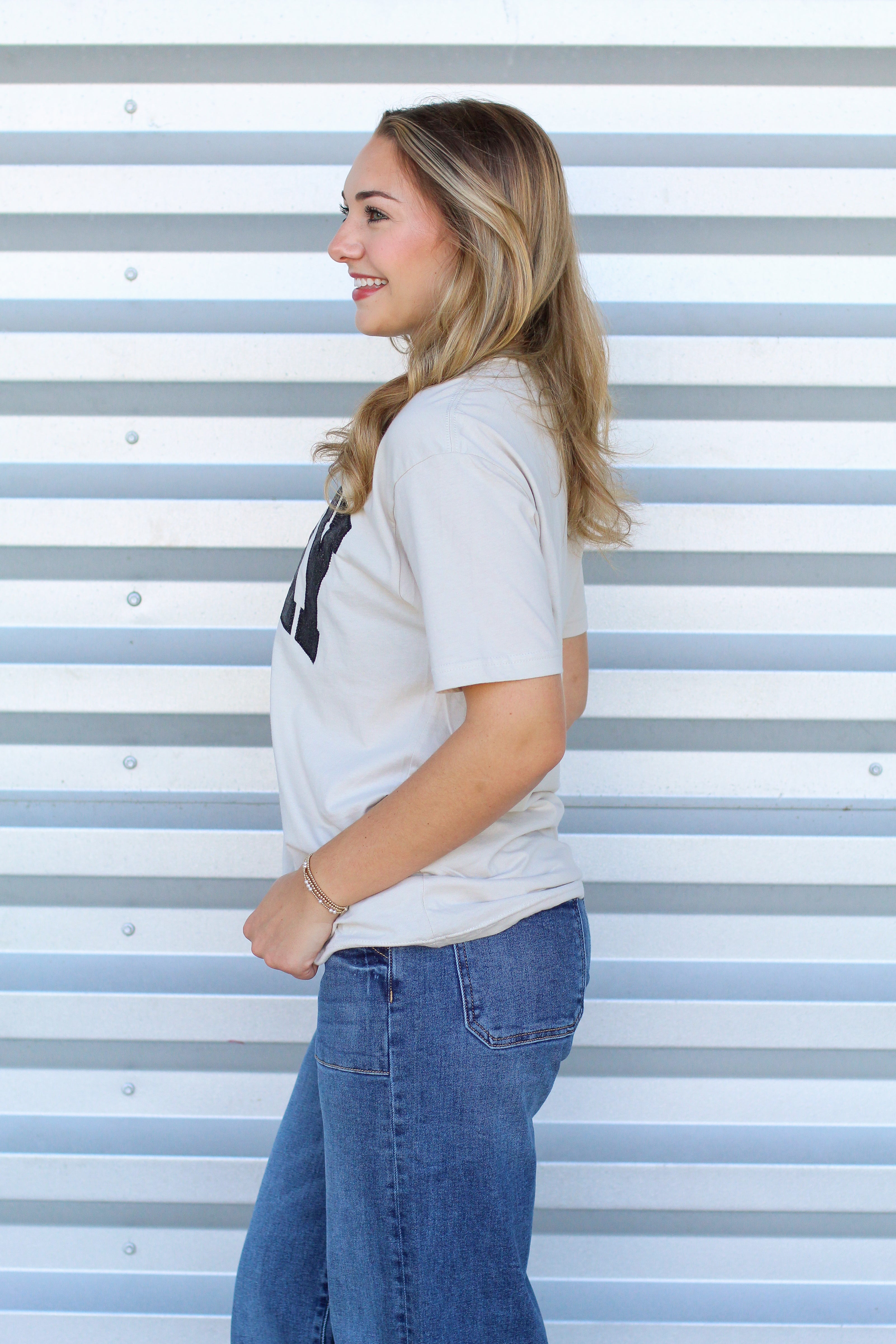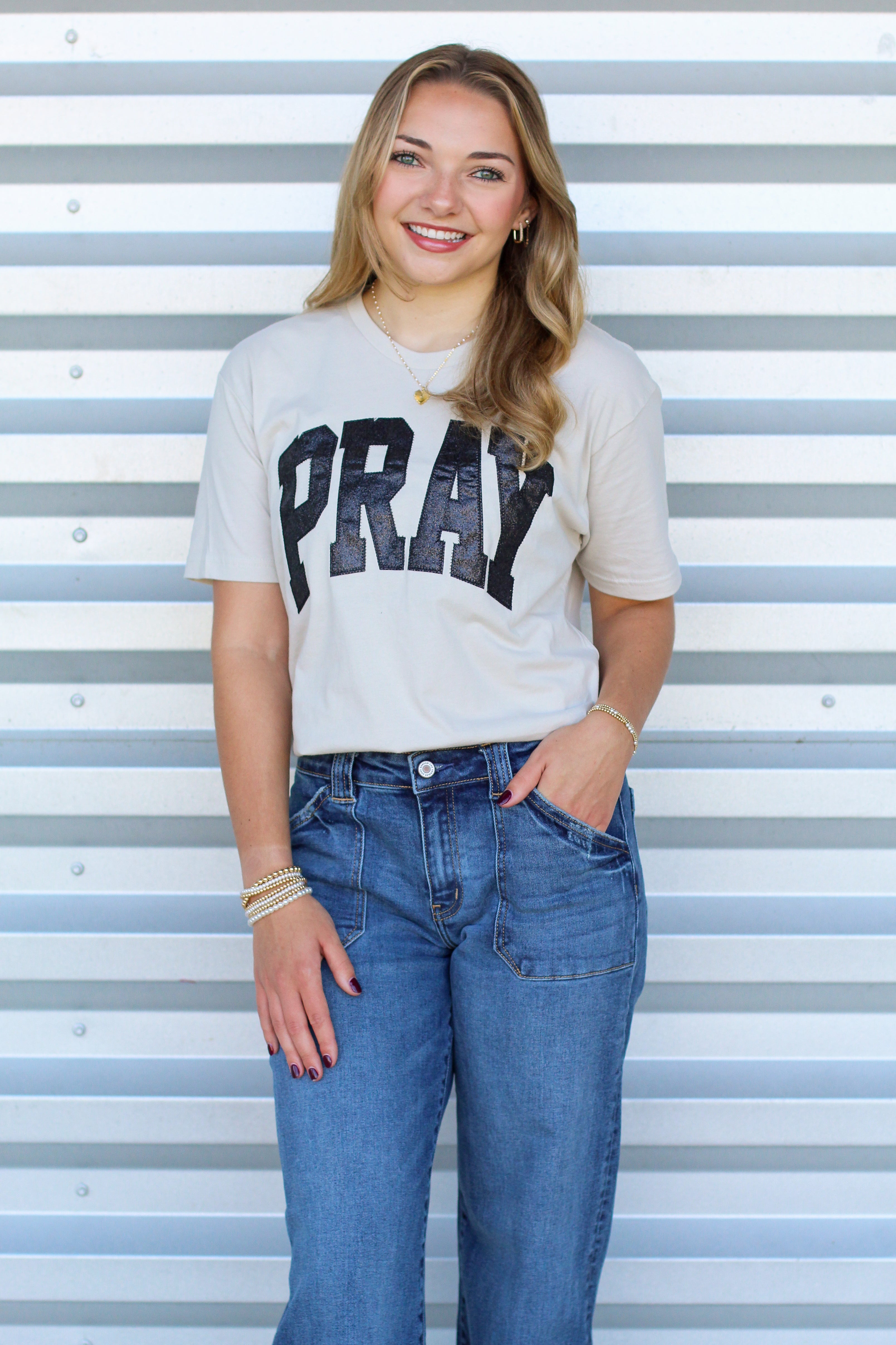 Spread faith and positivity in our Pray Tee! This comfy short-sleeve features bold black textured lettering that makes a statement in all the right ways. Made with 100% cotton for a soft, breathable feel, it’s the perfect tee for everyday wear — whether you’re dressing it up with jeans and gold jewelry or keeping it casual with leggings and sneakers.