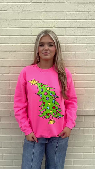 Bright, cheerful, and full of Christmas charm — this sweatshirt is the perfect pop of festive fun! The vibrant pink backdrop paired with the whimsical Christmas tree graphic makes it an instant mood-booster for the holiday season. Soft, cozy, and easy to style, it’s the throw-on-and-go piece you’ll reach for again and again.