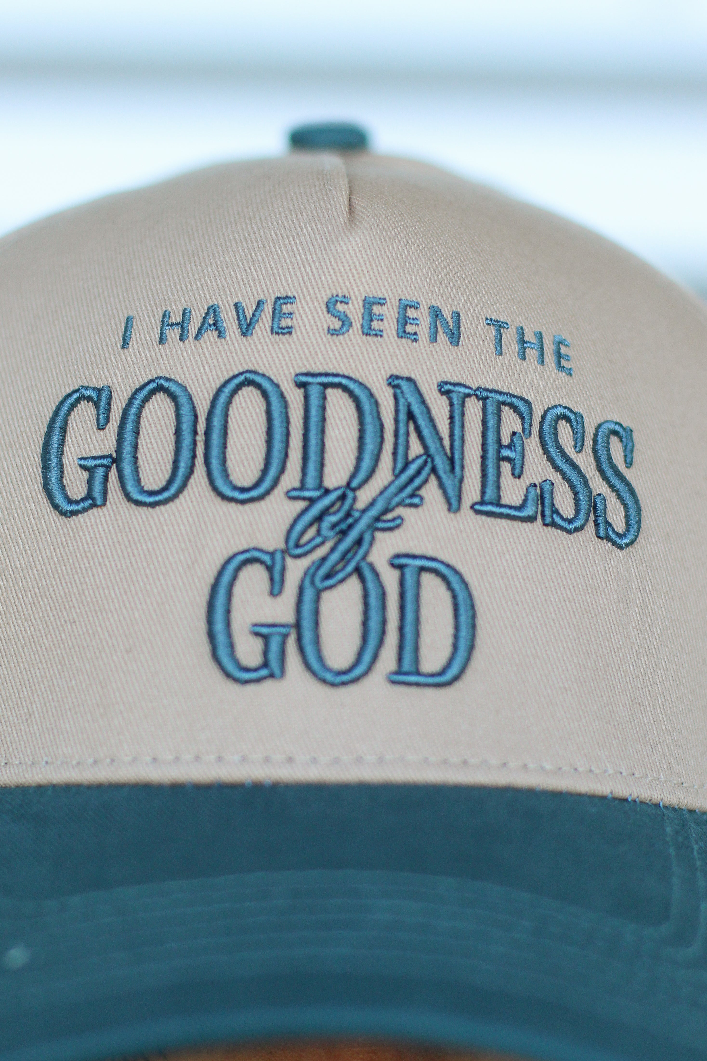 Carry a daily reminder of His faithfulness with our Goodness of God Trucker Hat. Featuring a two-tone tan and forest green color palette and embroidered lettering that declares “I Have Seen the Goodness of God,” this hat blends timeless style with a powerful message of gratitude. Perfect for everyday wear, it’s a simple yet meaningful way to share your faith wherever you go.Details