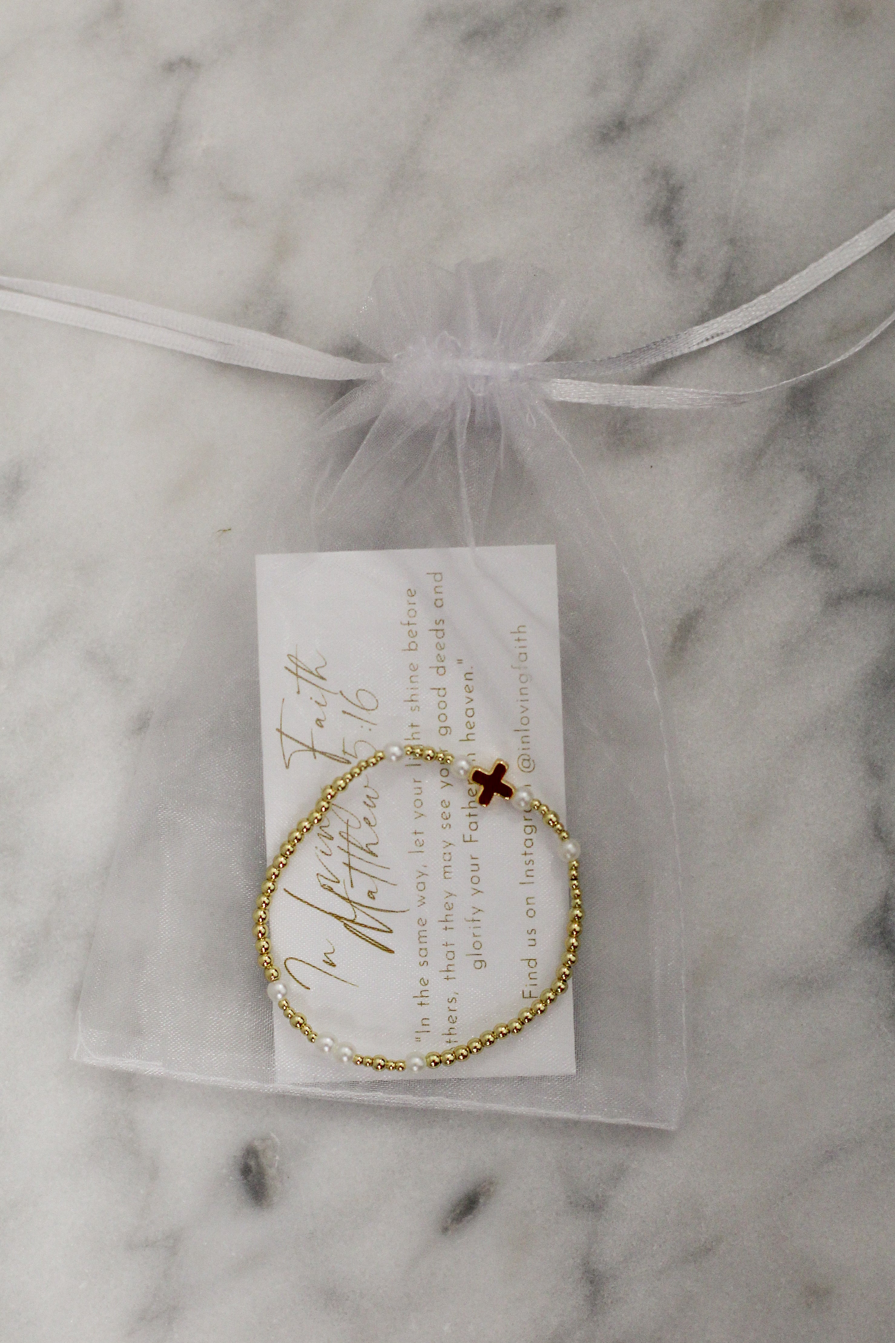 Each bracelet represents a verse from The Bible, and the beads around the cross are a representation of this verse.