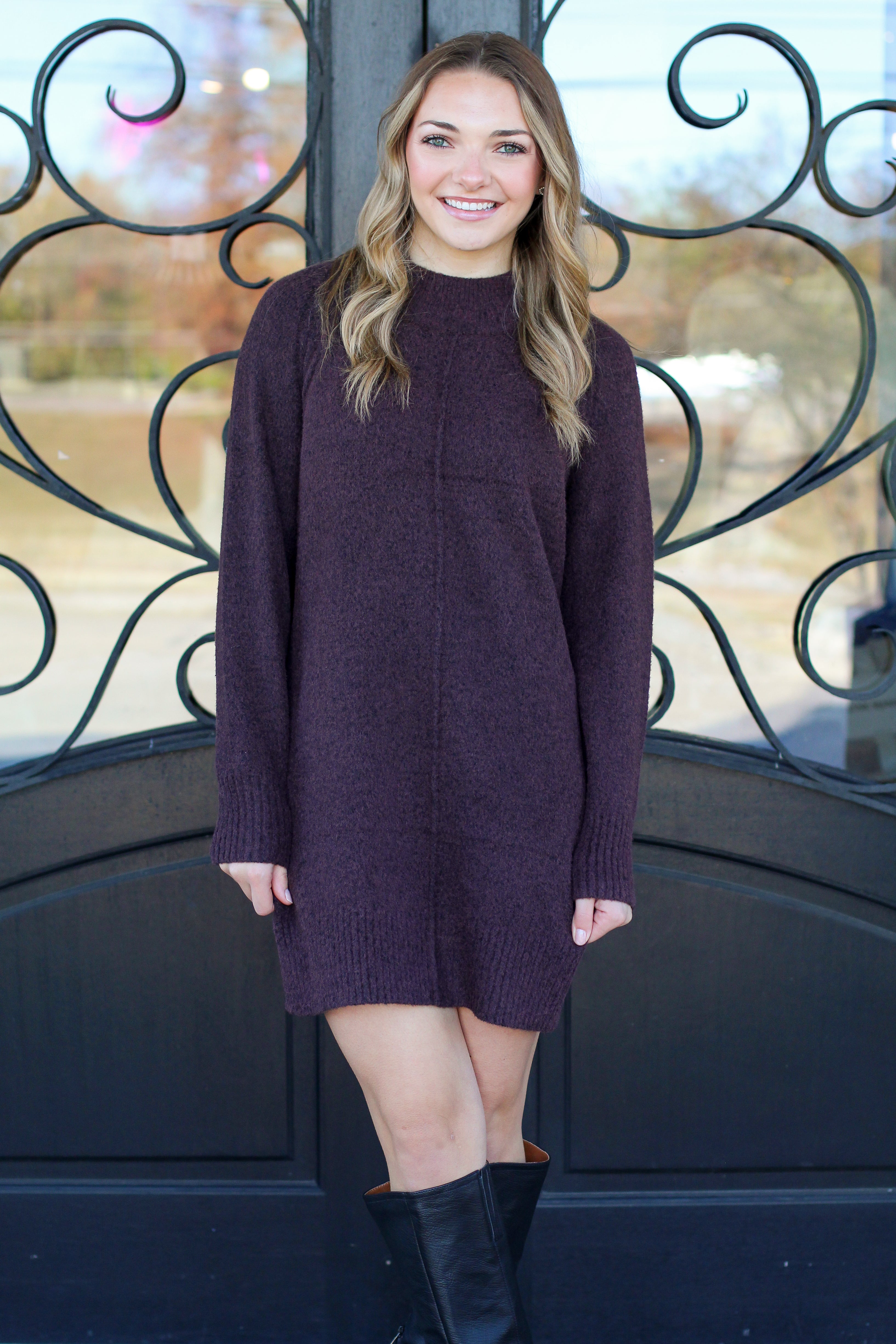 Looking for a warm, comfy sweater dress that still feels chic for the holidays or winter events? This soft knit turtleneck dress gives you that effortless, put-together look with a relaxed fit and bold seasonal color. Pair it with tall boots and a scarf (like Kennedy!) for the easiest cold-weather outfit.