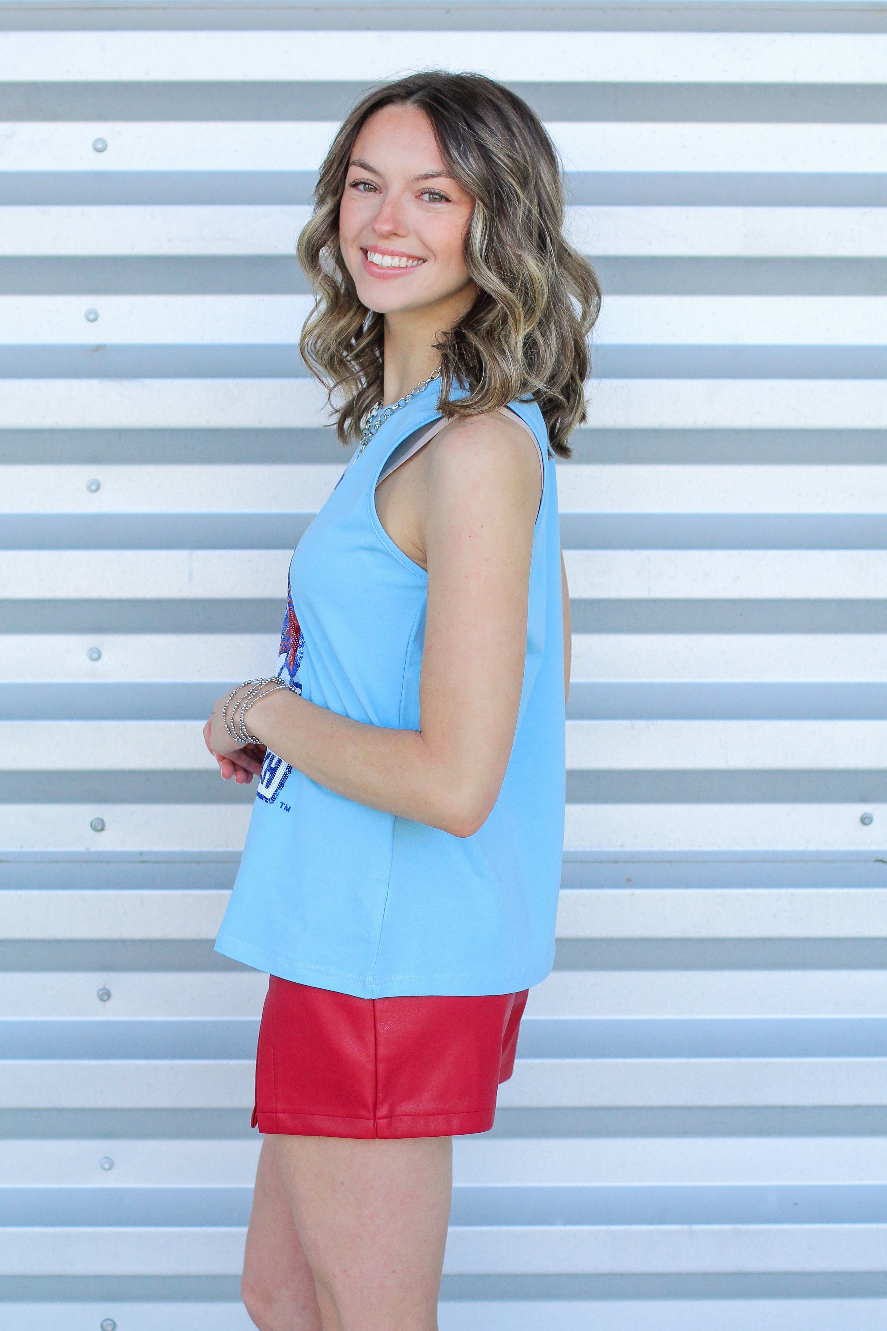 This sequin tank is OFFICIALLY LICENSED by Louisiana Tech University. It features a bold sequin Bulldog graphic, which is perfect for cheering on the Dawgs in comfort and confidence. The soft cotton-spandex blend gives it just the right amount of stretch for an easy, flattering fit — making it a go-to for tailgates, game days, and beyond.
