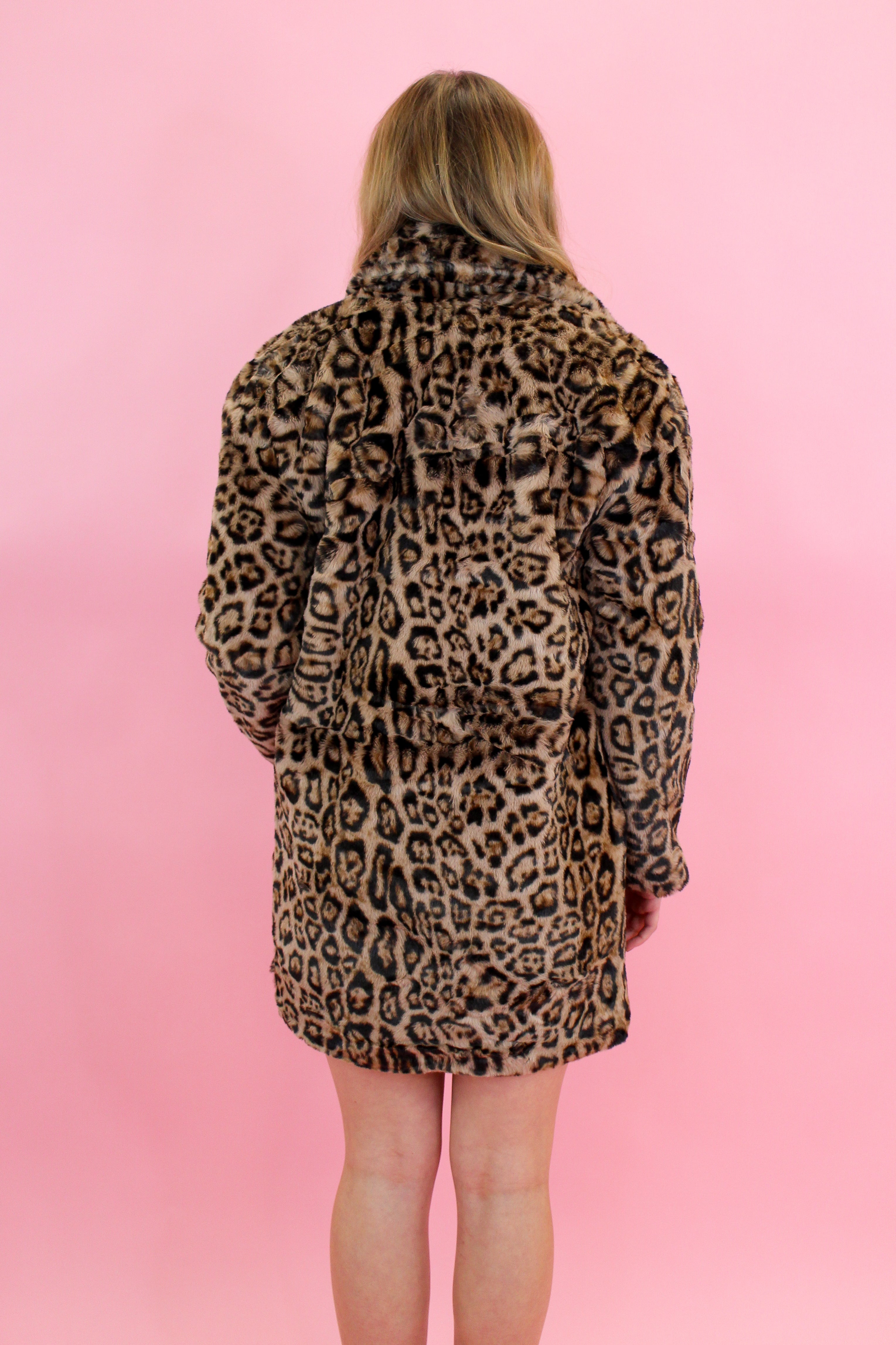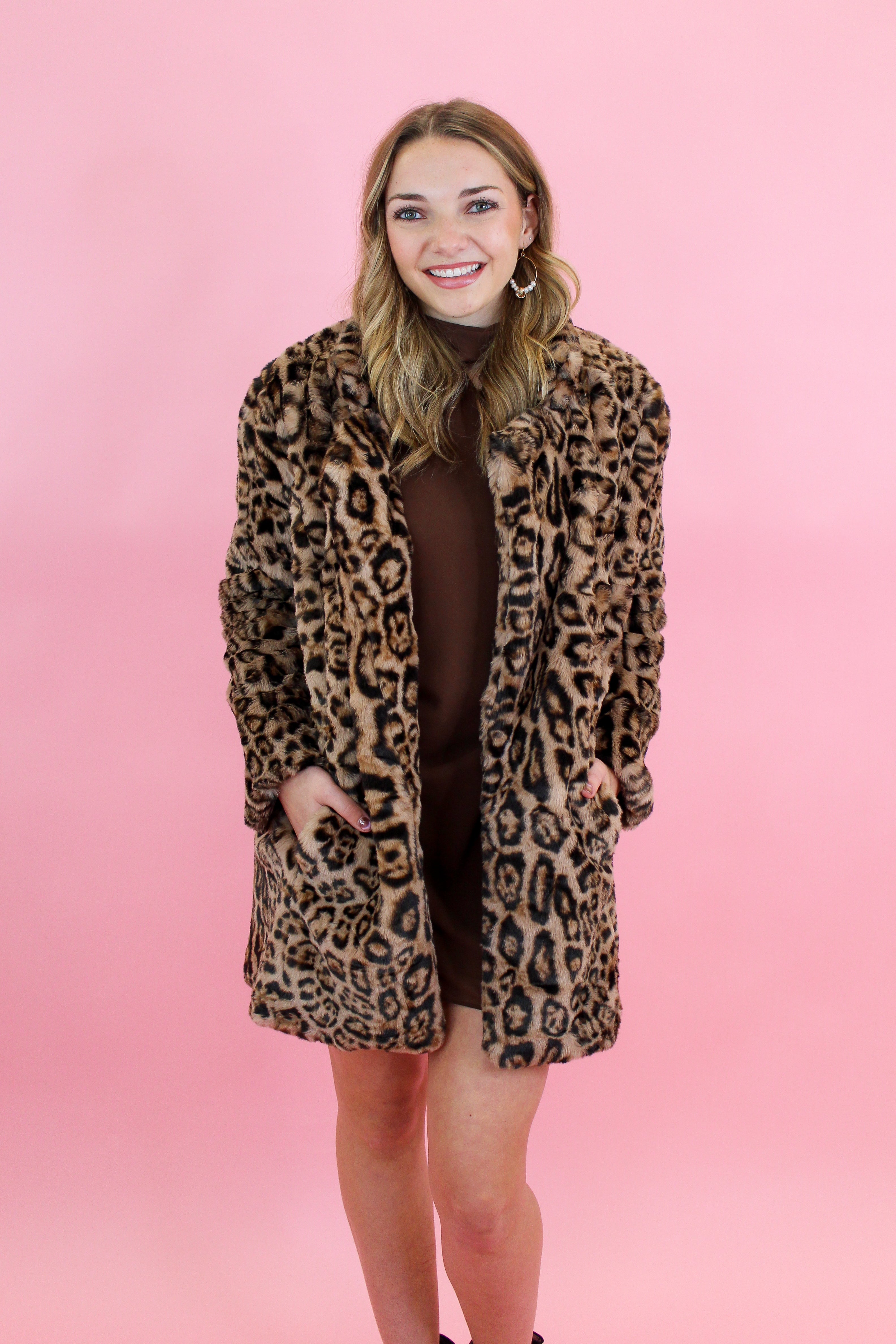 This statement leopard faux fur coat is the ultimate blend of cozy and bold. Featuring a luxe plush texture and classic open-front design, it instantly elevates any outfit while keeping you warm and stylish. Whether layered over a dress or paired with denim, this coat is a total showstopper.