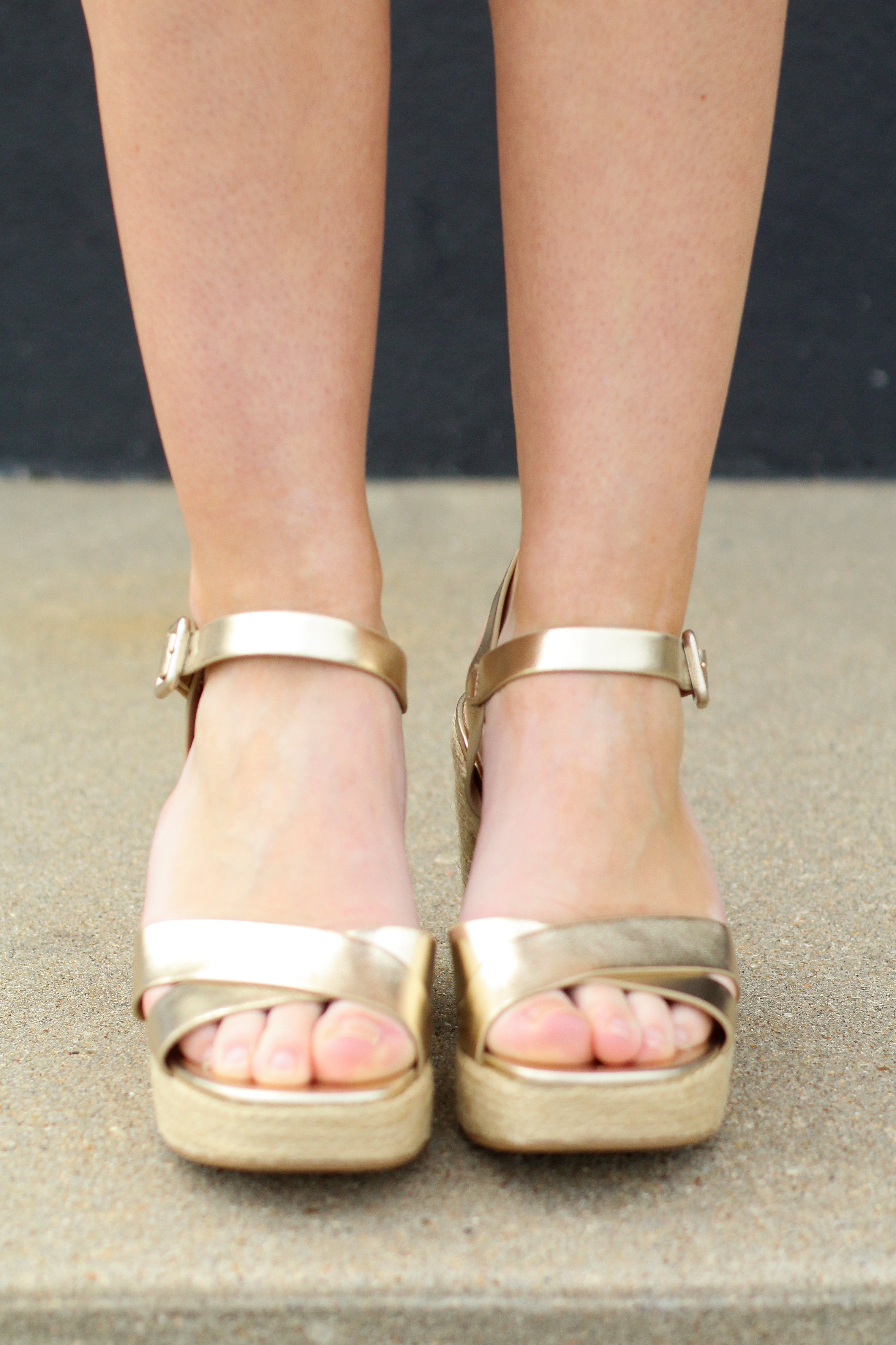 These metallic platform heels are the perfect statement shoe. Featuring crisscross front straps, an adjustable ankle buckle, and a woven platform heel, they give you height with added stability. Dress them up for events or pair them with denim for an elevated everyday look.