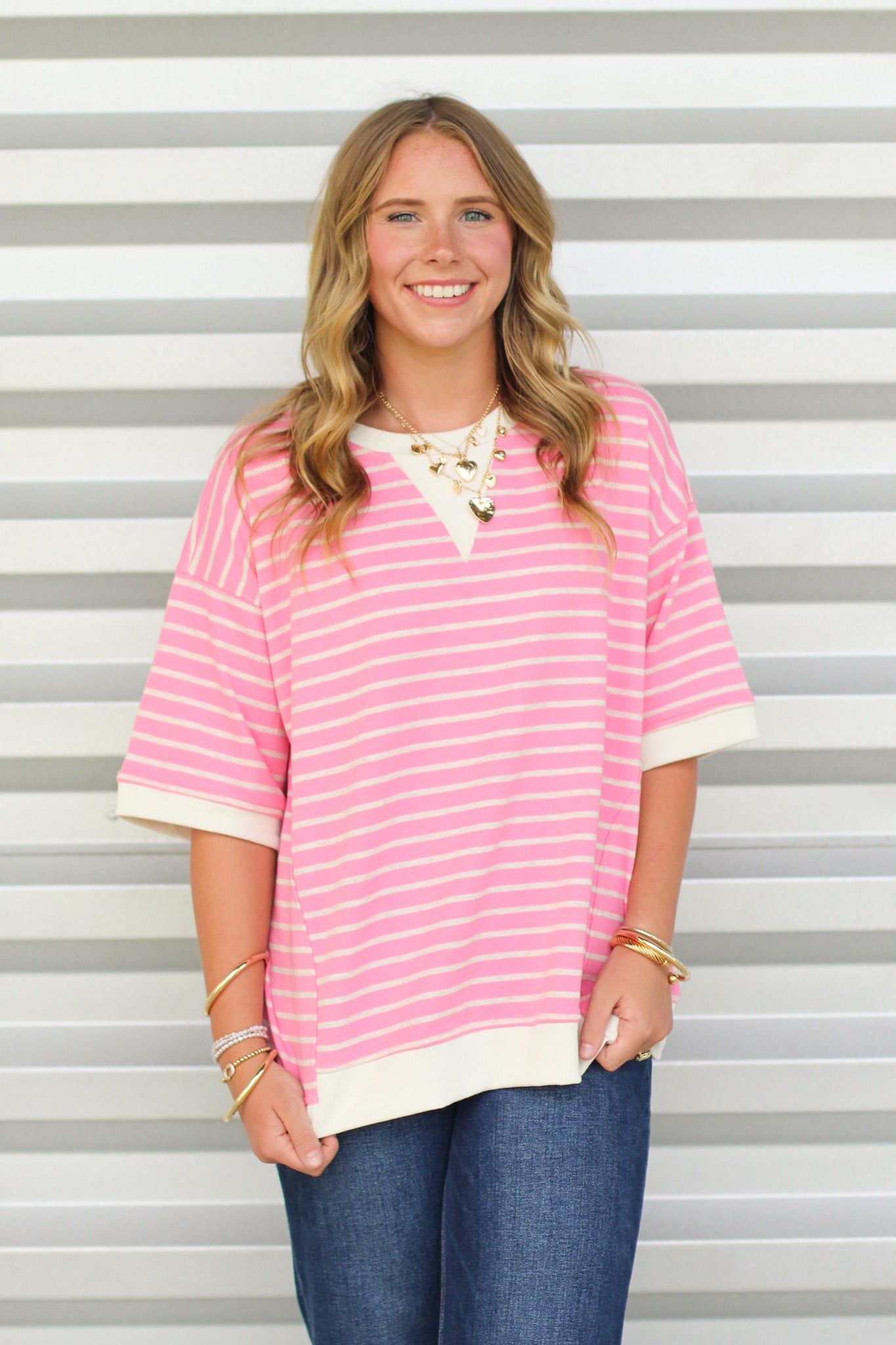 - Karley is 5'4 and wearing a size Small.