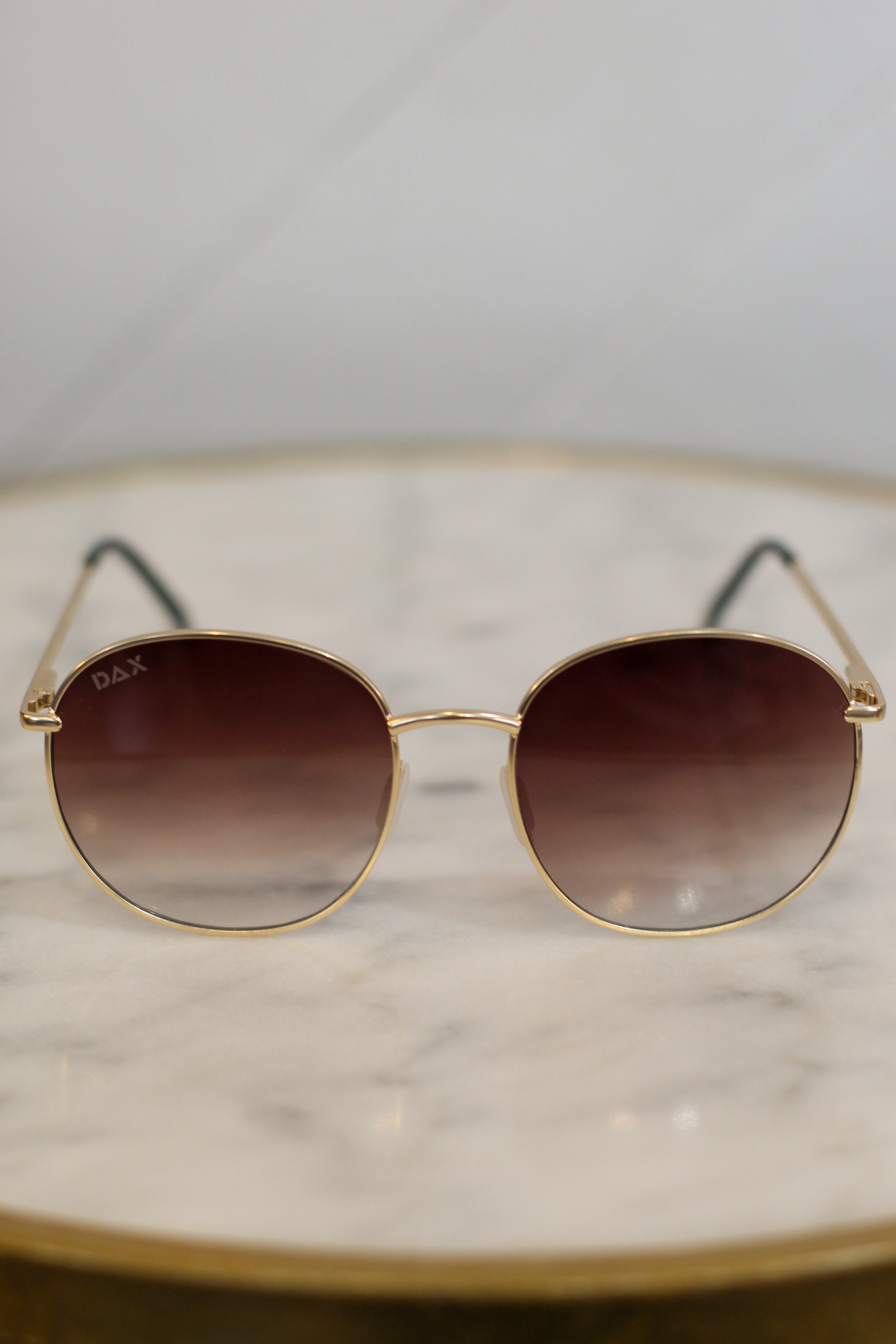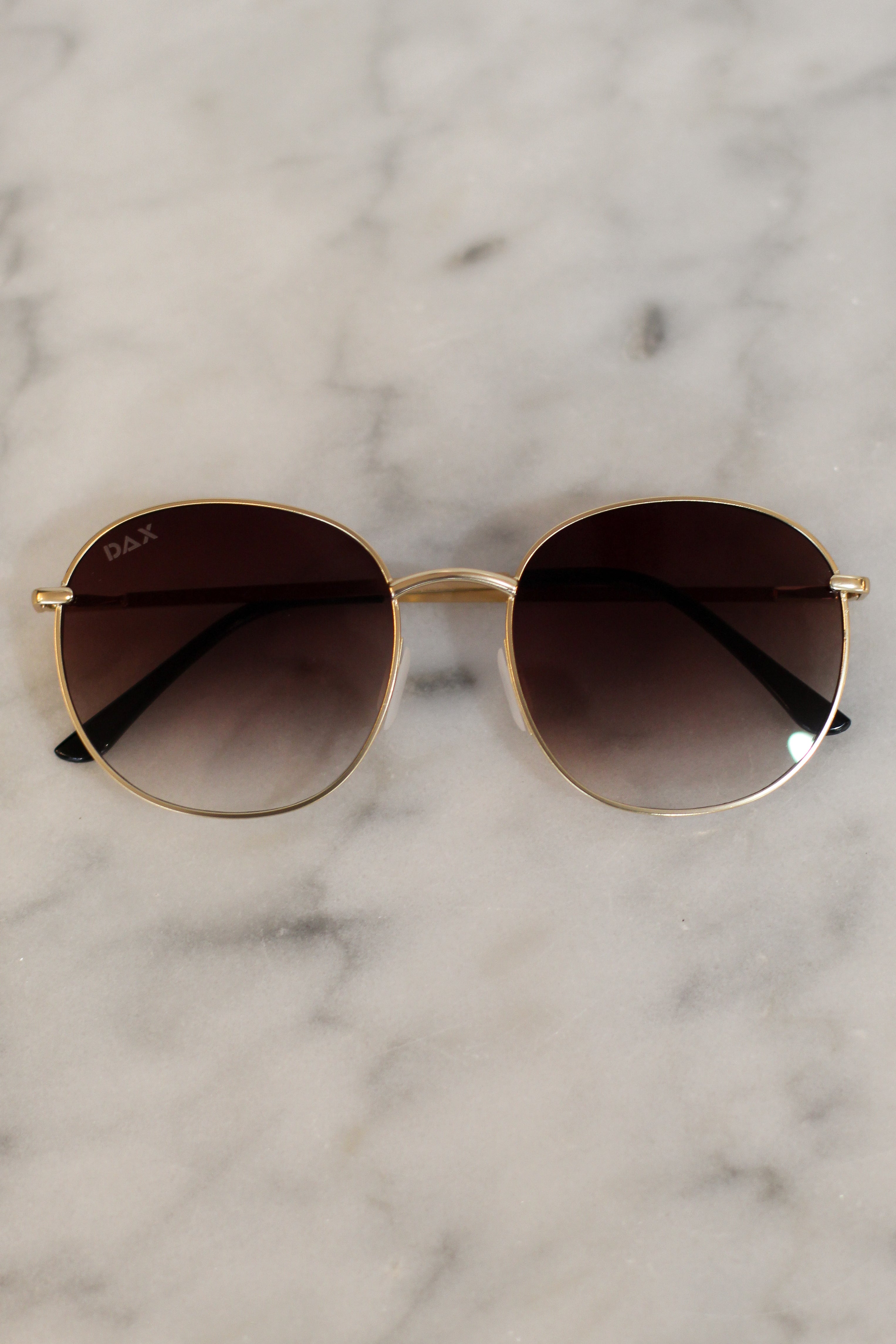 DescriptionPRODUCT DETAILS: Experience unparalleled visual clarity with Georgie gold metal framed sunglasses. Crafted with premium materials, these sunglasses are designed to reduce glare and reflection while providing protection from the sun's harmful UV rays. Stylish and sleek, these shades will elevate your look to luxury levels! HAIR FRIENDLY DESIGN: No more snags - no more tangles - no more bald spots! Sunglasses shouldn’t ruin your hair. Ours have flush, snag-free nose pieces that glide over buns, braids, or messy waves without pulling a single strand. Fashion meets function with our tangle-free nose pieces that are perfect for any occasion! WHAT'S INCLUDED: - 1 pair of stunning DAX Eyewear Sunglasses