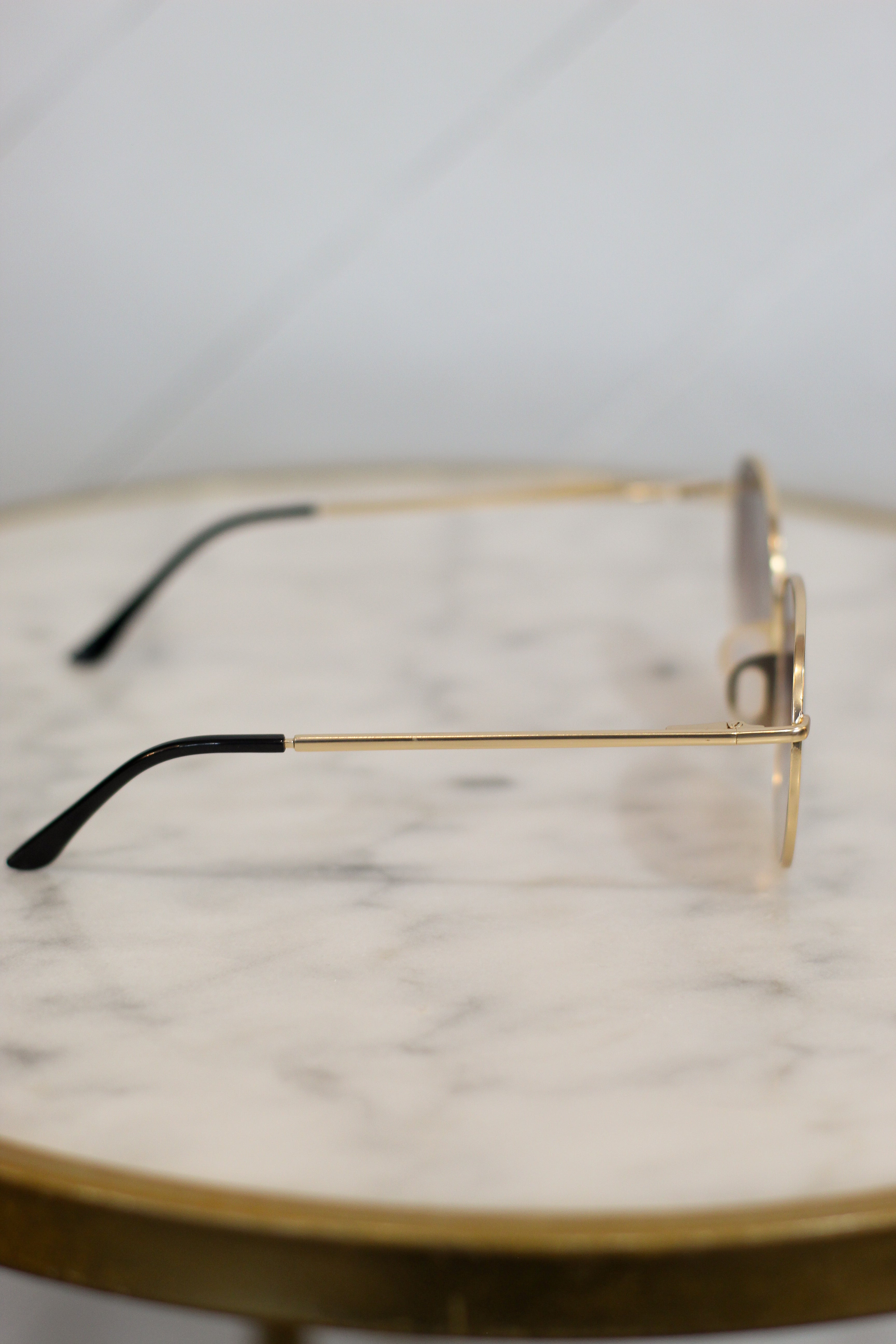 Experience unparalleled visual clarity with Georgie gold metal framed sunglasses. Crafted with premium materials, these sunglasses are designed to reduce glare and reflection while providing protection from the sun's harmful UV rays. Stylish and sleek, these shades will elevate your look to luxury levels!