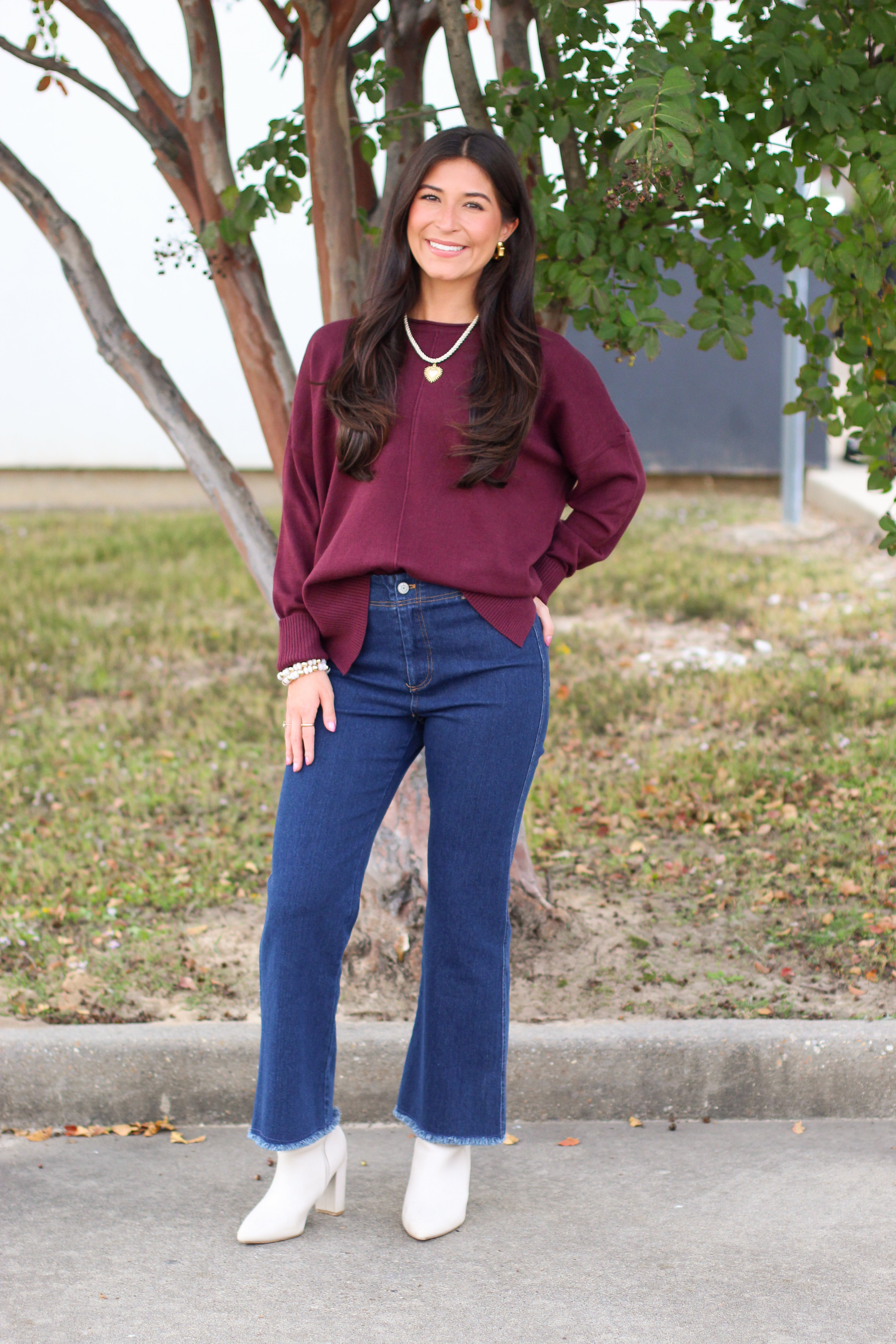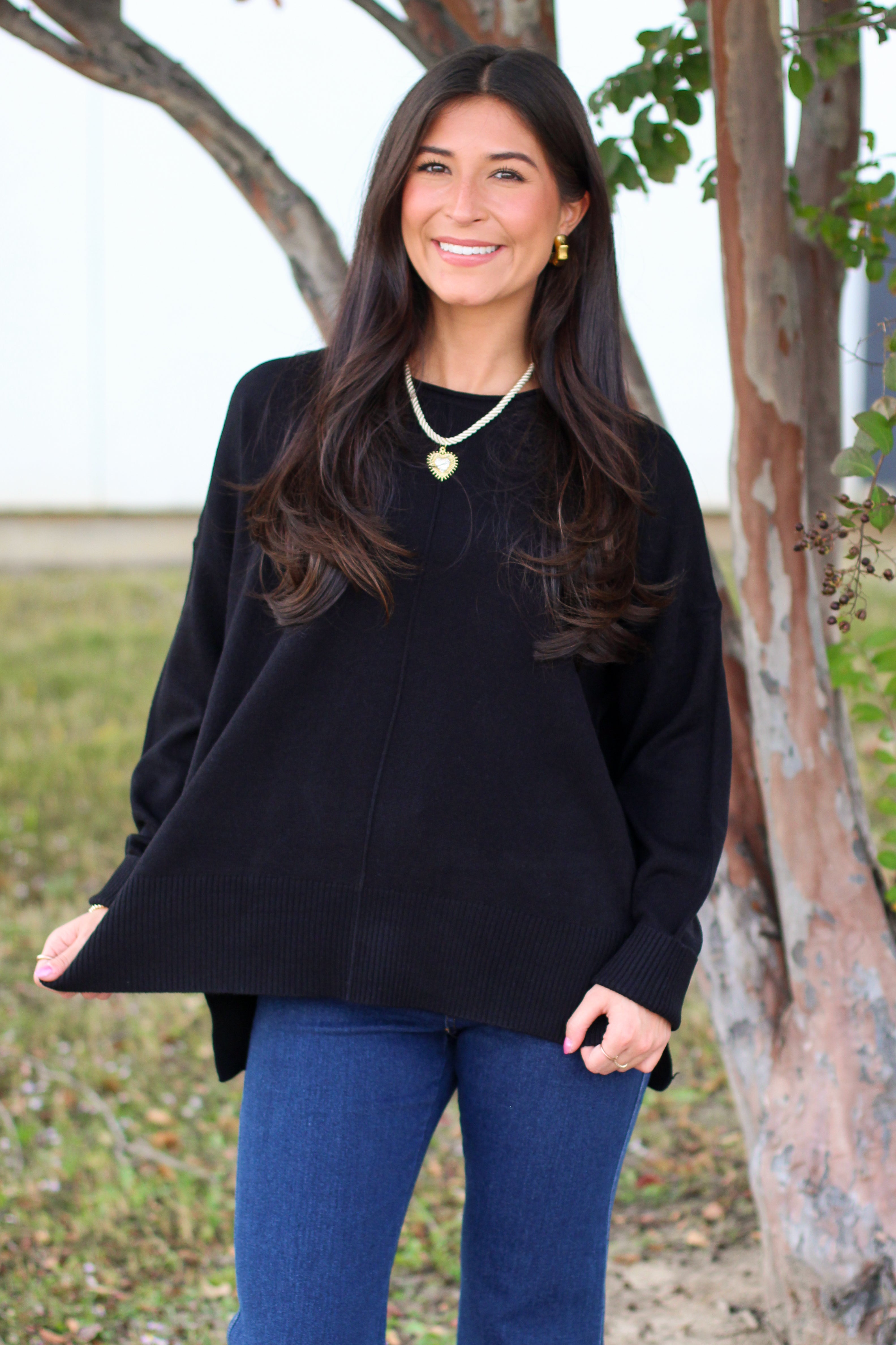 Meet your new go-to comfy sweater. This knit features a relaxed fit with subtle seam details and the softest feel. Easy to dress up with denim + boots or keep casual with leggings. A timeless staple for the cooler months.