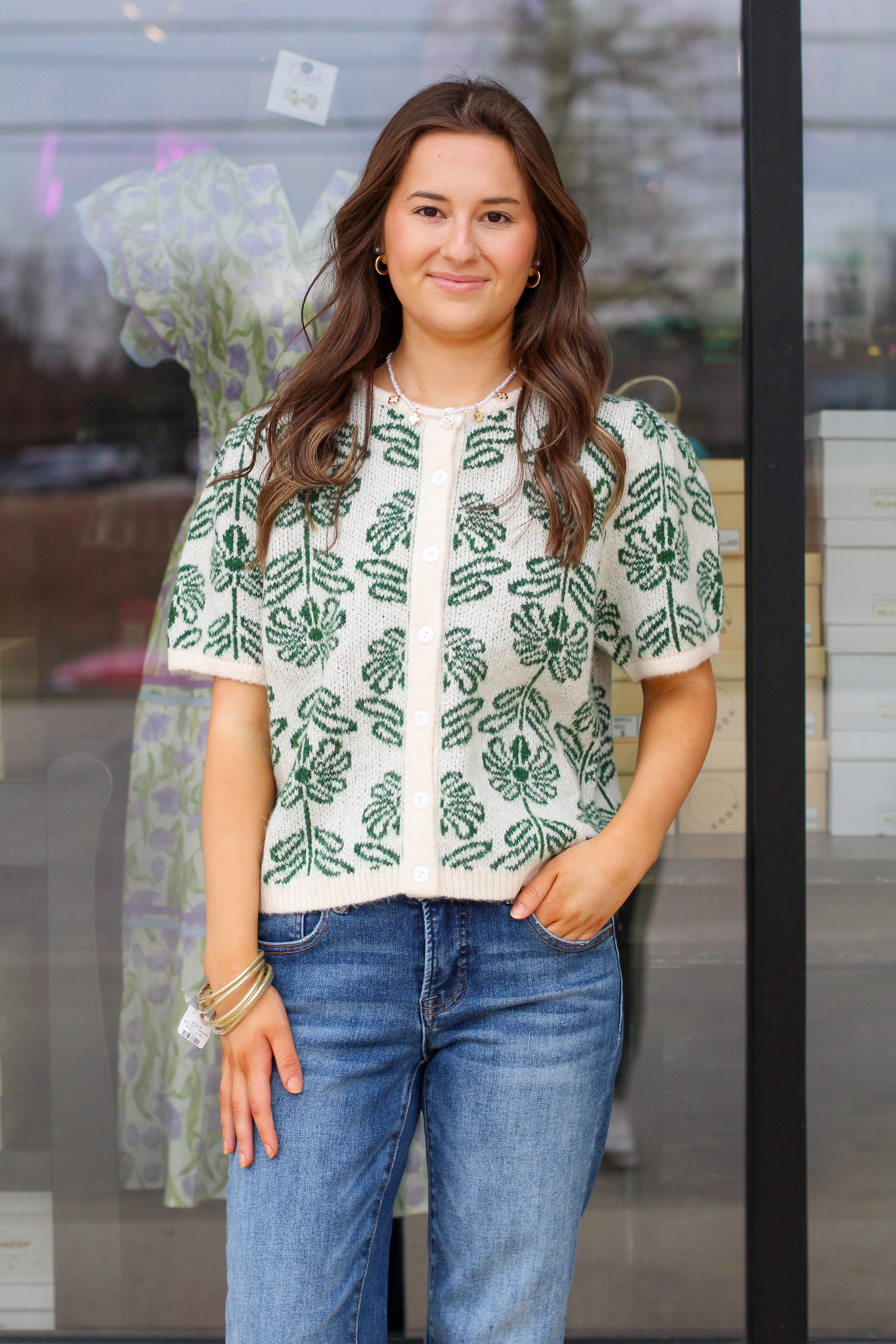 This blue floral knit button-up top is the perfect mix of feminine and effortless. Featuring a lightweight knit fabric and short sleeves, it’s easy to style for everyday wear while still feeling polished and put together.