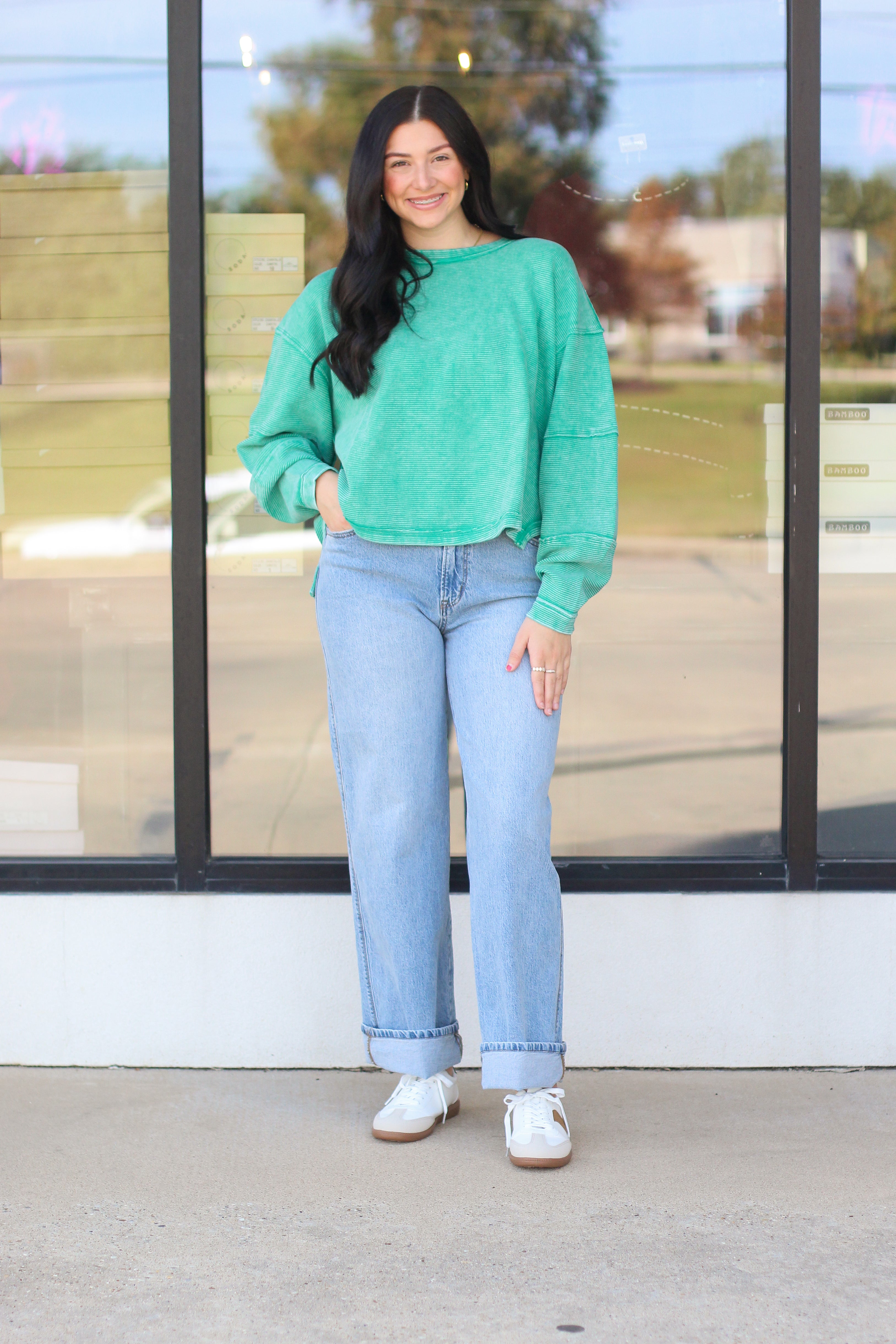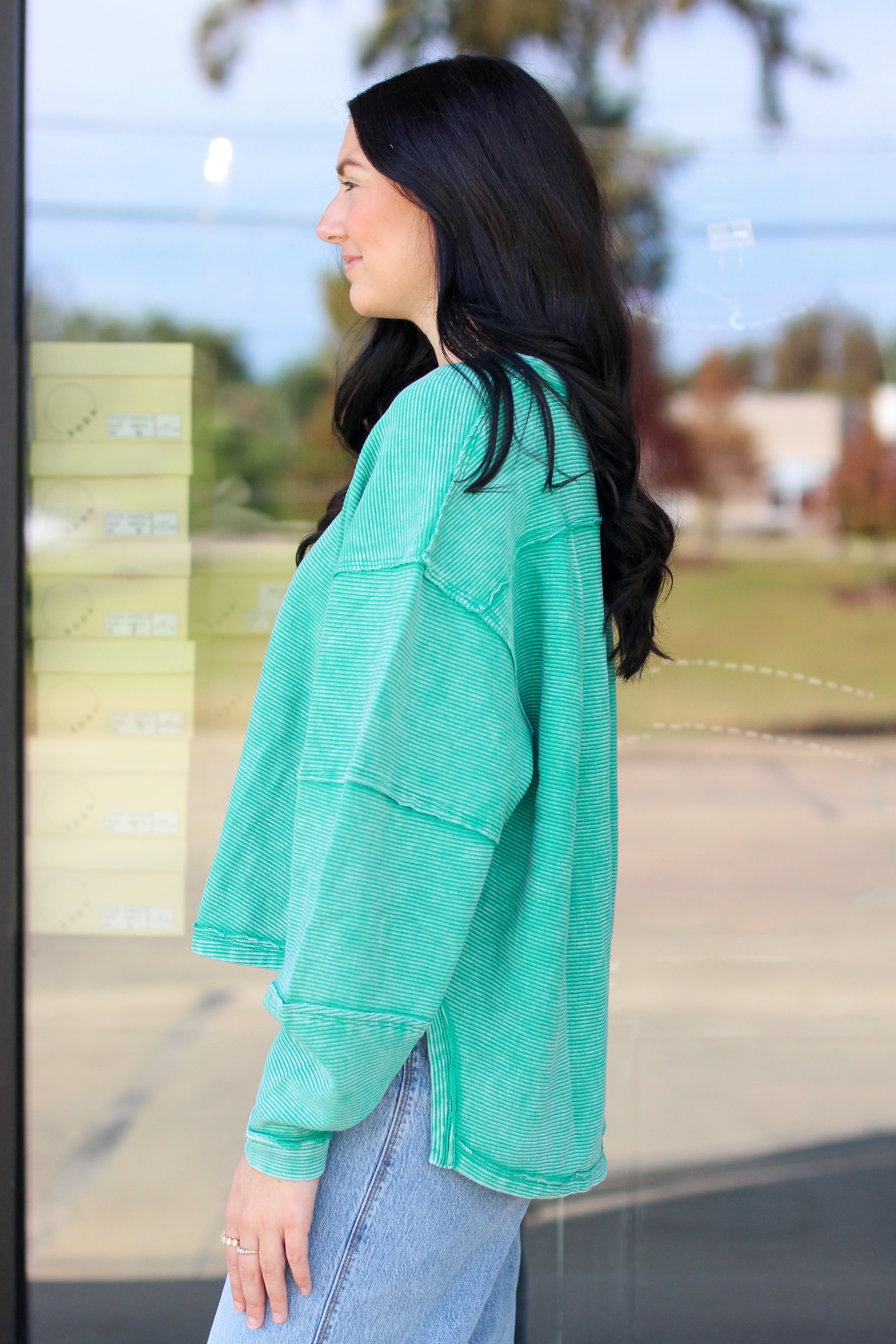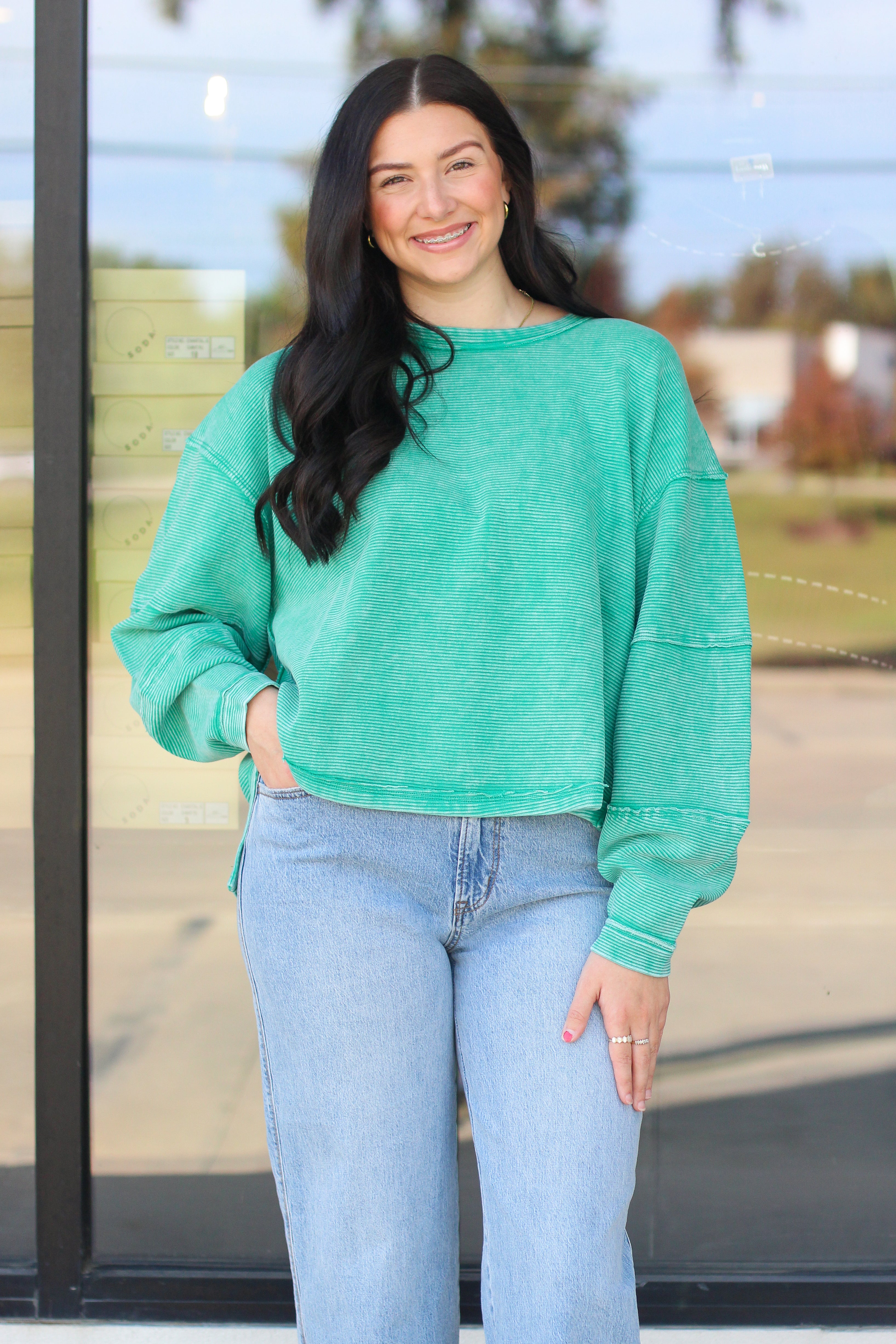 Keep it casual and cozy in our Seafoam Mineral Wash Pullover! This lightweight sweatshirt features a relaxed, oversized fit with exposed seam detailing and a lived-in mineral wash finish that gives it the perfect vintage look. The soft 100% cotton fabric keeps you comfy all day long while adding a pop of color to your fall wardrobe. Pair it with jeans or leggings for an effortlessly cool vibe!