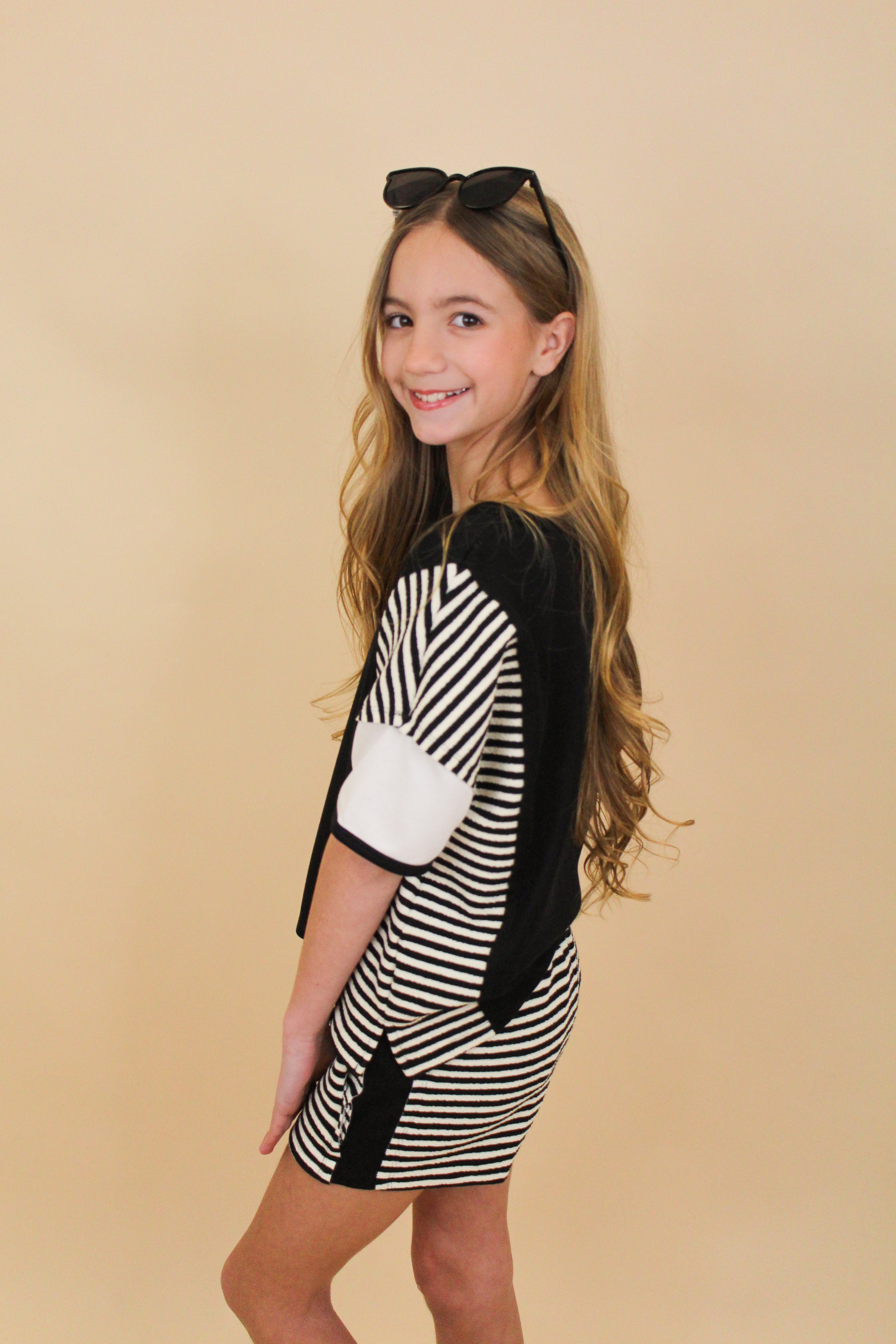 This sporty-chic set is the definition of cool and comfy! Featuring a color-block short sleeve top paired with matching striped shorts, this outfit is perfect for everyday wear, travel days, or fun weekend outings. The classic black and white combo keeps it timeless while the relaxed fit makes it easy to move and play in.