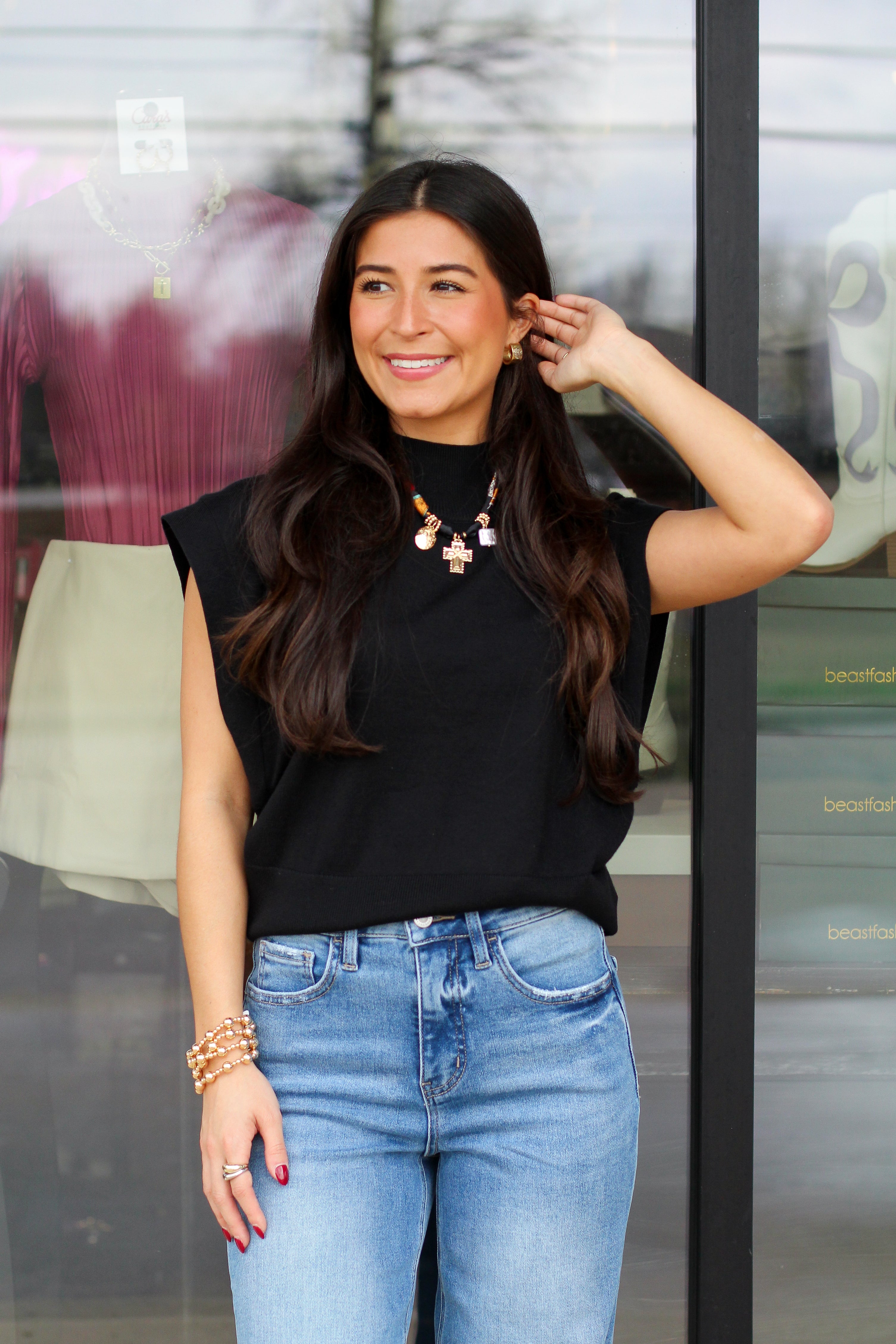Meet your new go-to top for effortless, elevated style. Our Everyday Chic Shoulder Pad Top features a sleek sleeveless silhouette with subtle shoulder padding for a structured, flattering look. Made from a soft, lightweight knit, this top is perfect for dressing up with statement jewelry or keeping it casual with denim.