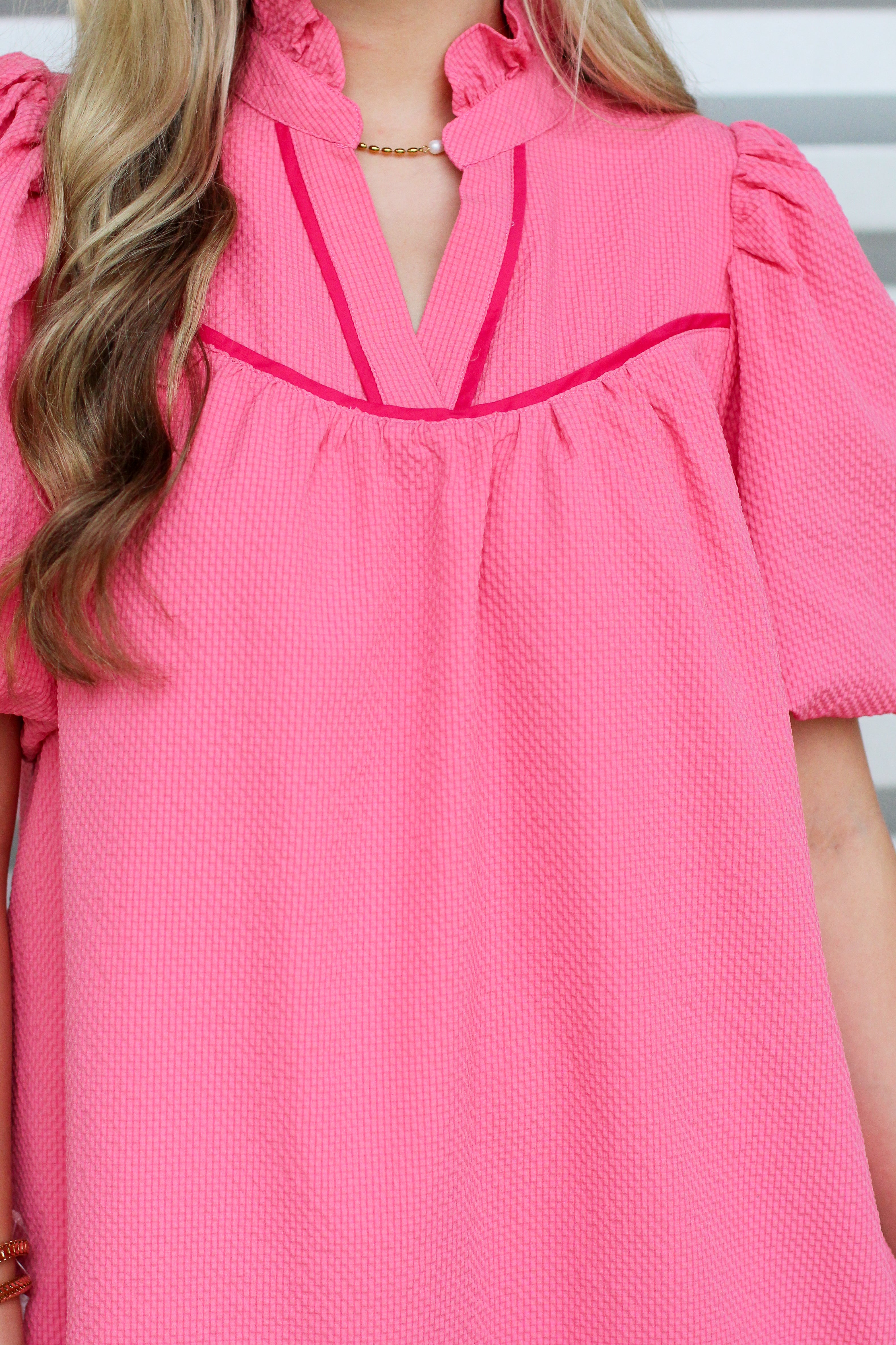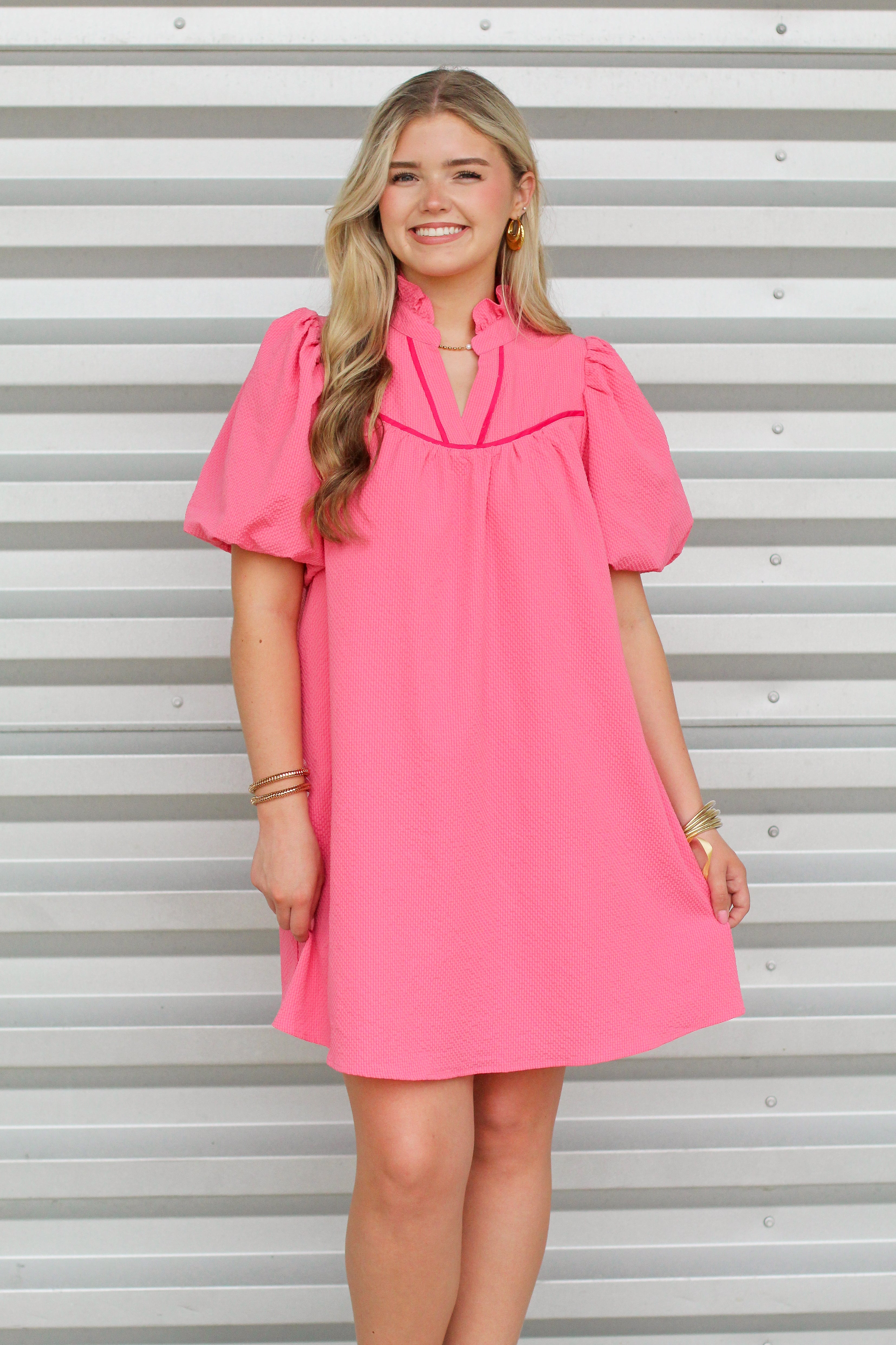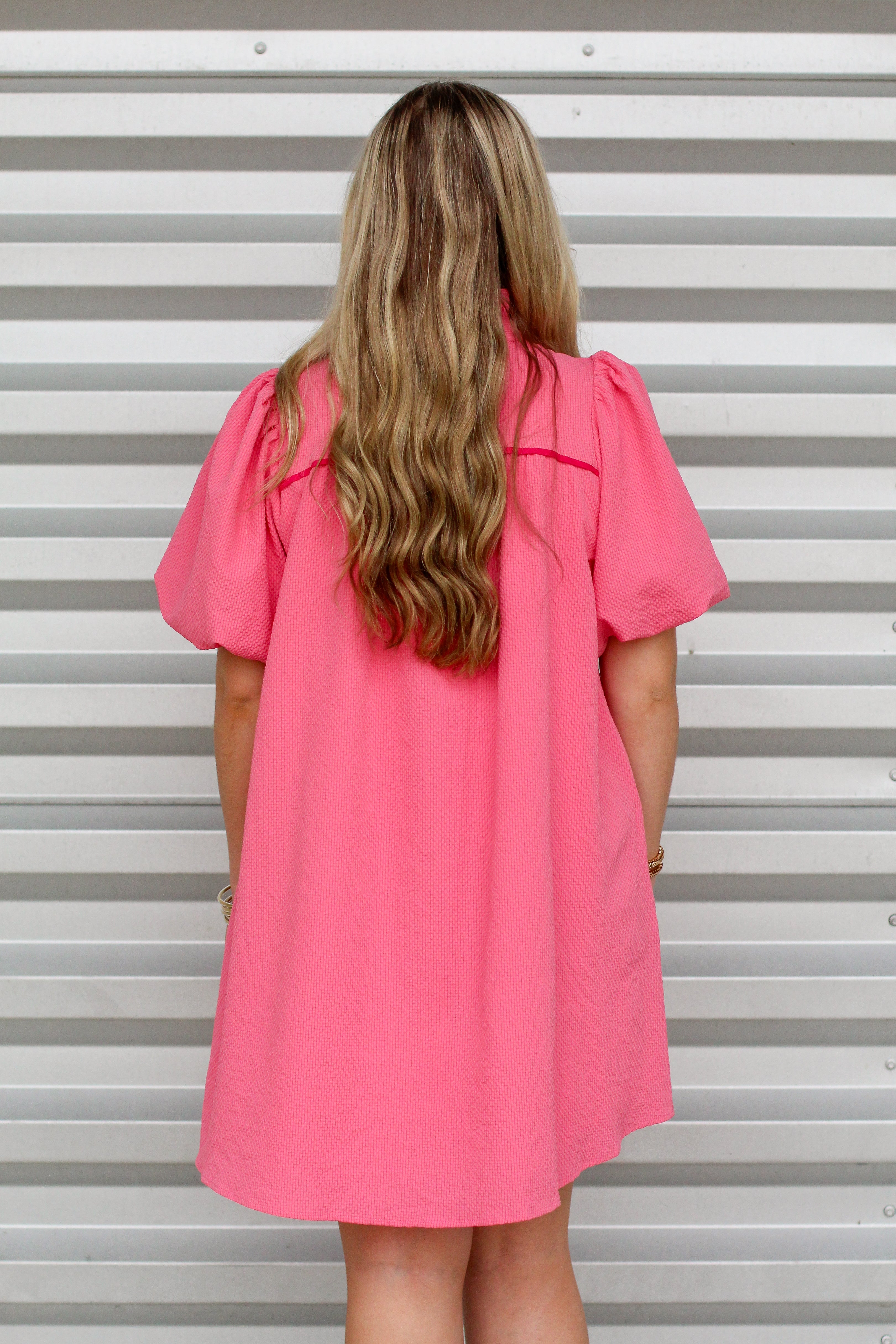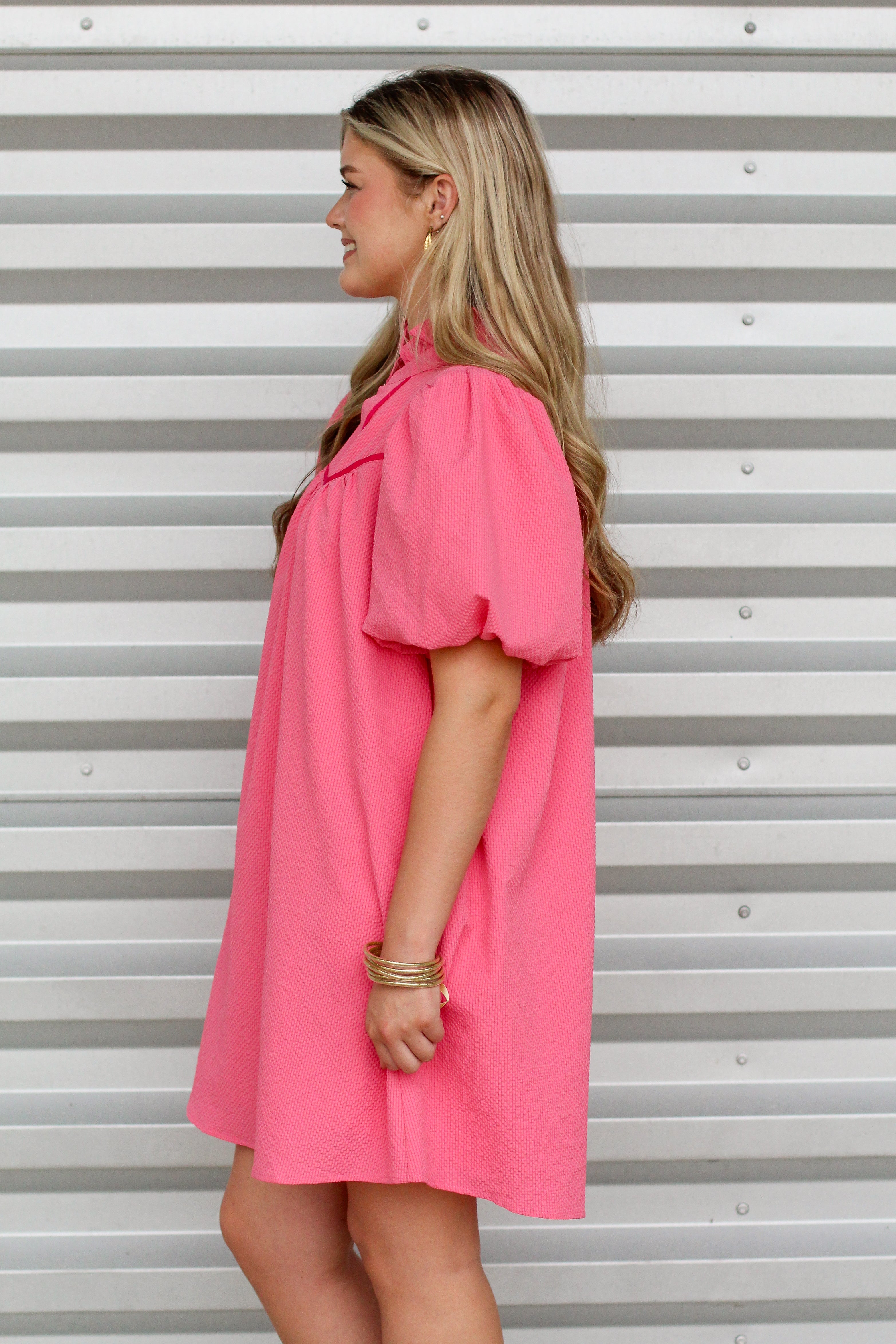 This effortlessly polished shift dress is the definition of easy, everyday chic. Designed with a relaxed, flowy silhouette, it drapes beautifully without clinging, making it both flattering and comfortable. The structured high neckline adds a refined touch, while the subtle cap sleeves give it a modern, tailored feel.