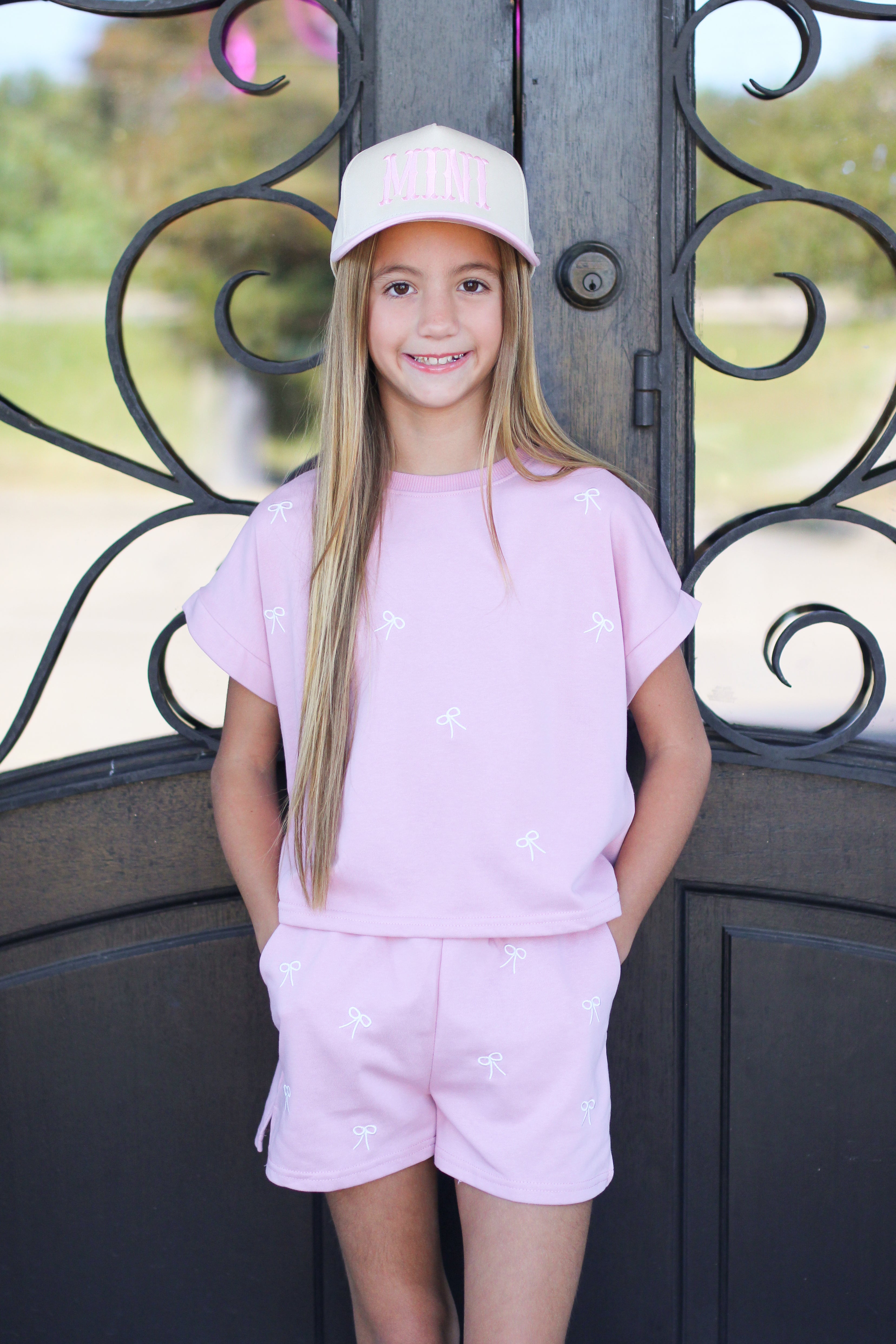 Pretty in pink! Our Tween Pink Bow Set is the ultimate combo of cute and comfy. This soft knit matching set features a relaxed-fit top and shorts covered in delicate white embroidered bows — the perfect mix of playful and polished. Whether she’s lounging, shopping with mom, or out with friends, this set keeps her feeling confident and cozy all day!
