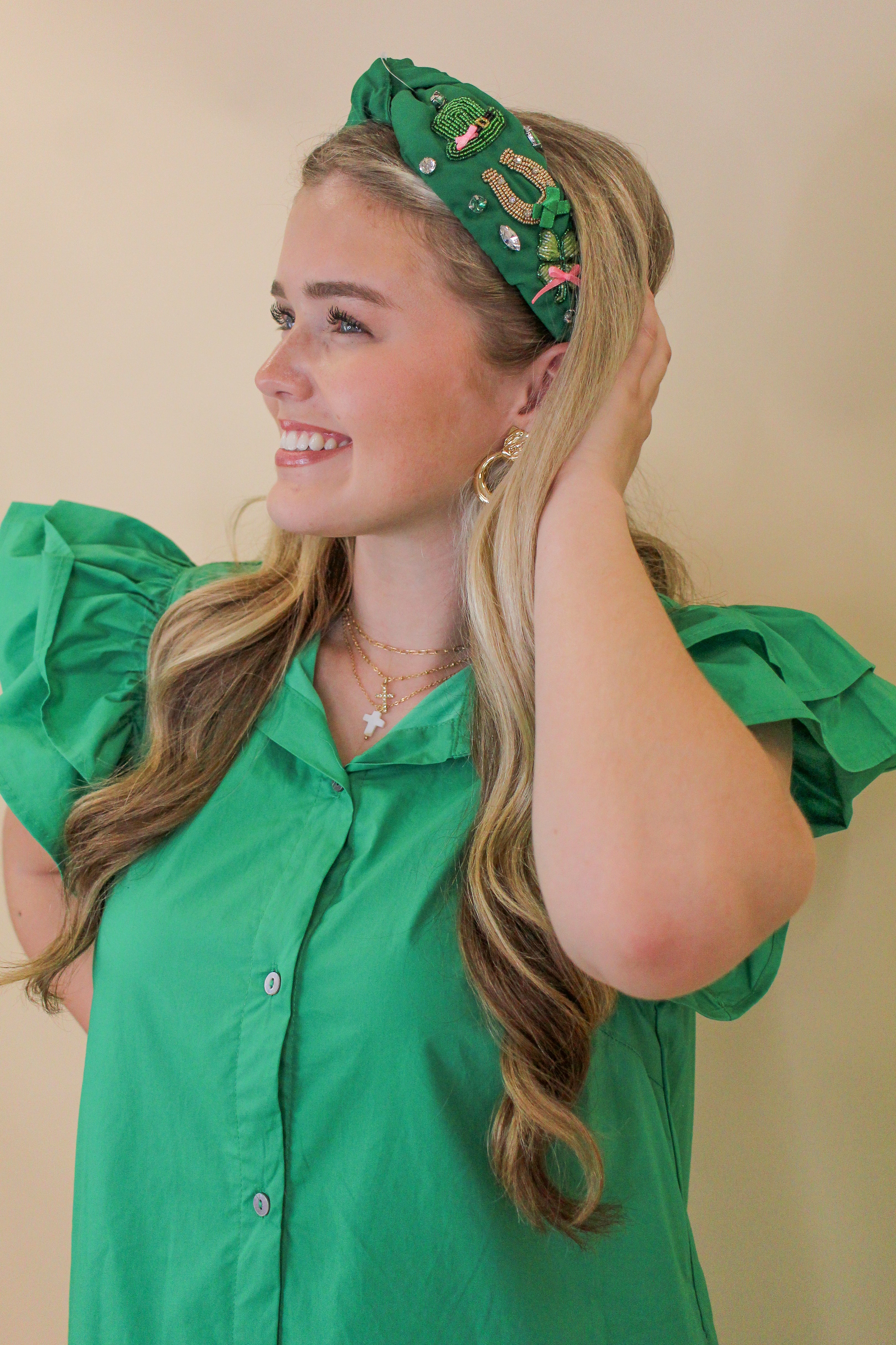 The bold color paired with the feminine ruffle sleeves makes this piece stand out in the best way. The breathable cotton fabric keeps it comfortable for all-day wear, while the button-down detail adds versatility. Style it with wedges for church, showers, or spring events — or dress it down with sandals for an effortless everyday look.